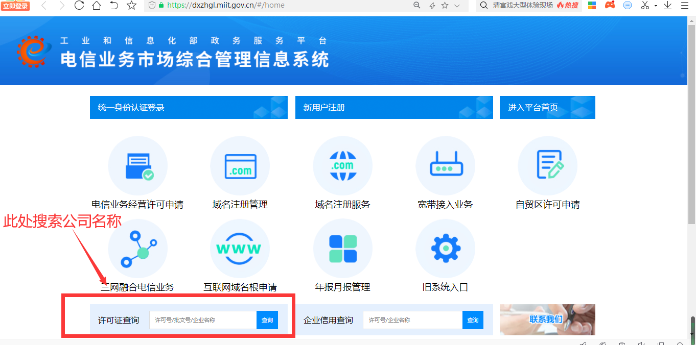 3. 在“許可證查詢”處輸入公司名稱,列如:XXXXXX有限公司