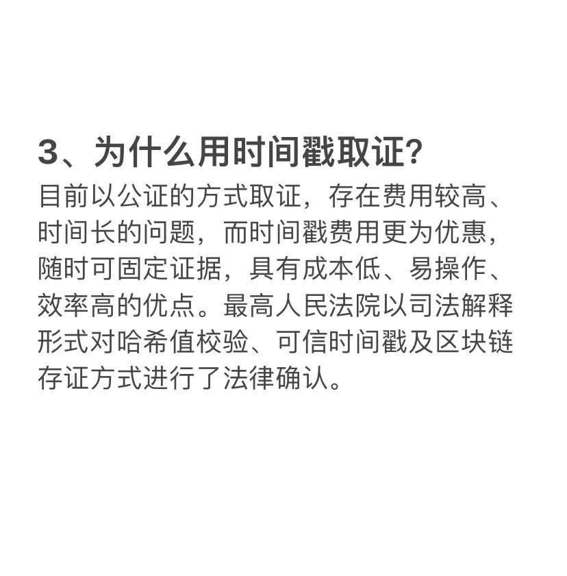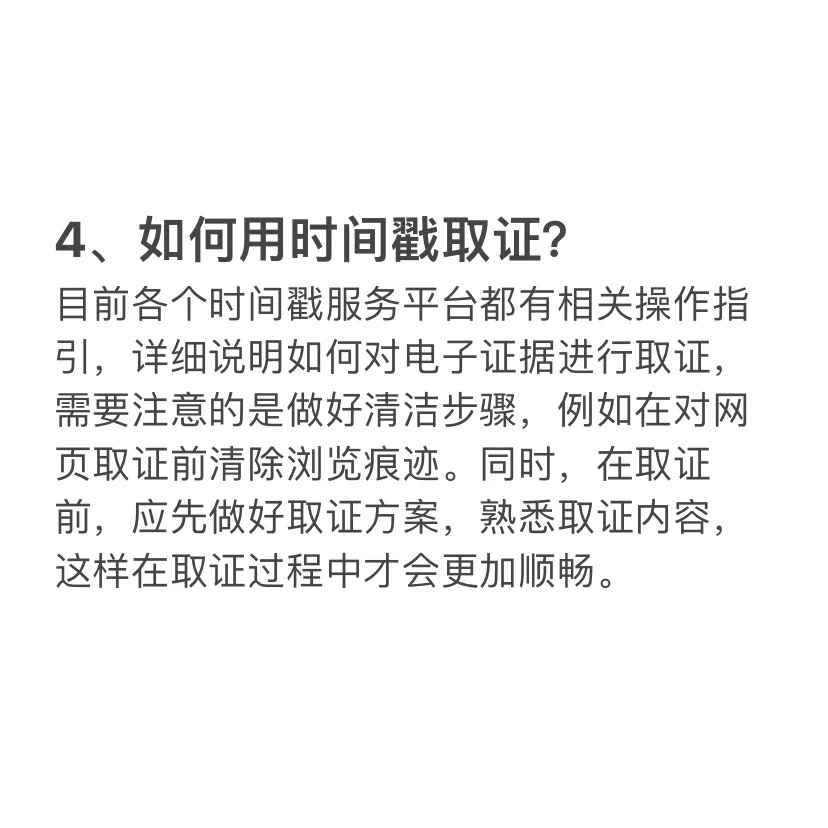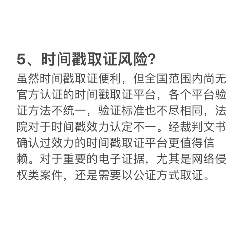 如何用時(shí)間戳固定電子證據(jù)? 在訴訟案件中,證據(jù)是決定案件勝敗的關(guān)鍵因素。隨著互聯(lián)網(wǎng)的普及和發(fā)展,電子證據(jù)越來(lái)越普遍,此時(shí)如何對(duì)電子證據(jù)取證、舉證成為新的問(wèn)題。 1、什么是電子證據(jù)? 電子證據(jù)包括網(wǎng)絡(luò)平臺(tái)發(fā)布的信息、網(wǎng)絡(luò)應(yīng)用服務(wù)的通信信息、注冊(cè)信息、交易記錄等痕跡信息以及文檔、音頻、視頻等電子文件。電子證據(jù)因其易篡改、不易保存的特點(diǎn),在案件中常常引發(fā)爭(zhēng)議,導(dǎo)致案件事實(shí)不明。而經(jīng)過(guò)公證的電子證據(jù)通常會(huì)被法院認(rèn)可具有真實(shí)性。 2、什么是時(shí)間戳? 時(shí)間戳是由時(shí)間戳服務(wù)中心簽發(fā)的一個(gè)能證明數(shù)據(jù)電文等在一個(gè)時(shí)間點(diǎn)是已經(jīng)存在的、完整的、可驗(yàn)證的電子憑證,本質(zhì)是通過(guò)將用戶電子數(shù)據(jù)的哈希值和權(quán)威時(shí)間源綁定從而得以驗(yàn)證,哈希值就是電子數(shù)據(jù)的“指紋”,是唯一且對(duì)應(yīng)的。 3、為什么用時(shí)間戳取證? 目前以公證的方式取證,存在費(fèi)用較高、時(shí)間長(zhǎng)的問(wèn)題,而時(shí)間戳費(fèi)用更為優(yōu)惠,隨時(shí)可固定證據(jù),具有成本低、易操作、效率高的優(yōu)點(diǎn)。最高人民法院以司法解釋形式對(duì)哈希值校驗(yàn)、可信時(shí)間戳及區(qū)塊鏈存證方式進(jìn)行了法律確認(rèn)。 4、如何用時(shí)間戳取證? 目前各個(gè)時(shí)間戳服務(wù)平臺(tái)都有相關(guān)操作指引,詳細(xì)說(shuō)明如何對(duì)電子證據(jù)進(jìn)行取證,需要注意的是做好清潔步驟,例如在對(duì)網(wǎng)頁(yè)取證前清除瀏覽痕跡。同時(shí),在取證前,應(yīng)先做好取證方案,熟悉取證內(nèi)容,這樣在取證過(guò)程中才會(huì)更加順暢。 5、時(shí)間戳取證風(fēng)險(xiǎn)? 雖然時(shí)間戳取證便利,但全國(guó)范圍內(nèi)尚無(wú)官方認(rèn)證的時(shí)間戳取證平臺(tái),各個(gè)平臺(tái)驗(yàn)證方法不統(tǒng)一,驗(yàn)證標(biāo)準(zhǔn)也不盡相同,法院對(duì)于時(shí)間戳效力認(rèn)定不一。經(jīng)裁判文書(shū)確認(rèn)過(guò)效力的時(shí)間戳取證平臺(tái)更值得信賴。對(duì)于重要的電子證據(jù),尤其是網(wǎng)絡(luò)侵權(quán)類(lèi)案件,還是需要以公證方式取證。 目前時(shí)間戳在知識(shí)產(chǎn)權(quán)案件中應(yīng)用較廣,對(duì)于取證內(nèi)容多、取證時(shí)間緊的證據(jù),能夠有效解決問(wèn)題。對(duì)于個(gè)人來(lái)說(shuō),對(duì)微信聊天記錄、網(wǎng)頁(yè)、郵件采用時(shí)間戳的方式取證,也更具有性價(jià)比。 如果有需要可以聯(lián)系平臺(tái)客服根據(jù)您的業(yè)務(wù)需求來(lái)幫您辦理。