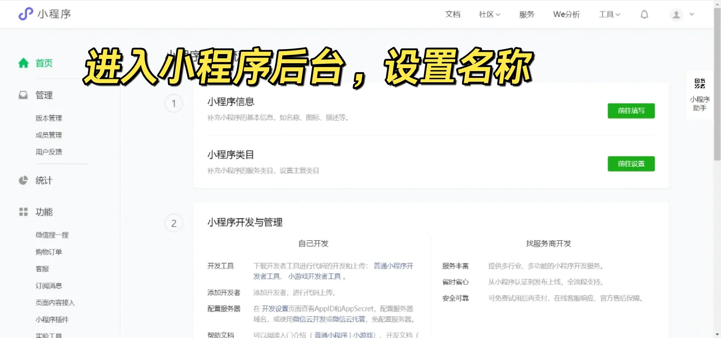 一、賬號注冊 已認(rèn)證的企業(yè)、政府、媒體及其他組織公眾號可以使用“公眾號快速注冊小程序”功能進行注冊。這里介紹常規(guī)注冊流程。 線上常規(guī)注冊流程 在微信公眾平臺官網(wǎng)首頁點擊右上角的“立即注冊”按鈕,賬號類型選擇“小程序” 填寫賬號信息并進行激活,這里需要一個未注冊過微信公眾平臺的郵箱。 賬號激活后使用郵箱登錄,進行用戶信息登記。 二、微信開發(fā)者工具 小程序使用微信開發(fā)者工具 下載完成后安裝運行,首次運行需要掃碼登陸 創(chuàng)建項目 點擊小程序下方的加號創(chuàng)建新項目(已有項目可以點擊右上方的導(dǎo)入按鈕導(dǎo)入)。 填寫項目名稱及目錄、AppID、選擇項目服務(wù)及模板,AppID需要登陸微信小程序公眾平臺進入開發(fā)管理-開發(fā)設(shè)置頁面查看。 使用微信開發(fā)者工具開發(fā)小程序時也可以申請測試號AppID, 開發(fā)及預(yù)覽 創(chuàng)建項目后自動進入小程序開發(fā)界面,默認(rèn)模板展示效果參考如下。 開發(fā)界面上方為工具欄、左側(cè)為模擬器、右側(cè)為編輯器、右下方為調(diào)試器,除工具欄外,各個區(qū)域可以使用按鈕控制隱藏展示。 開發(fā)過程中可以點擊工具欄上方的預(yù)覽按鈕在手機上查看效果,有掃描二維碼預(yù)覽及自動預(yù)覽兩種方式。 三、發(fā)布 1.上傳版本 小程序開發(fā)完成后,點擊工具欄右側(cè)的上傳按鈕上傳版本。 上傳成功后,在小程序平臺上進入版本管理頁面,在開發(fā)版本模塊即可找到上傳的版本。 2.體驗版 在開發(fā)版本模塊點擊右側(cè)下拉按鈕可以將開發(fā)版本選為體驗版本。 設(shè)置體驗版時需要填寫頁面路徑,這里自動填入了默認(rèn)路徑,對應(yīng)開發(fā)者工具項目左下角的頁面路徑。 點擊提交后生成體驗版二維碼。 掃描二維碼顯示體驗版信息,點擊前往體驗版按鈕體驗體驗版小程序。 新的體驗者掃描二維碼后需要向管理員申請體驗,管理員通過后才能夠打開體驗版小程序。 四、審核發(fā)布 小程序必須先完成小程序基本資料填寫才能提交審核,準(zhǔn)備好小程序名稱及圖標(biāo),在小程序平臺首頁填寫小程序信息及設(shè)置小程序類目。 小程序服務(wù)類目最多添加5個。 小程序信息填寫完成后基本設(shè)置界面參考如下。 回到版本管理頁面,找到待發(fā)布的版本點擊提交審核。 提交審核完成后,開發(fā)管理頁中審核版本模塊展示審核進度。 代碼審核通過,需要開發(fā)者手動點擊發(fā)布,小程序才會發(fā)布到線上提供服務(wù)。