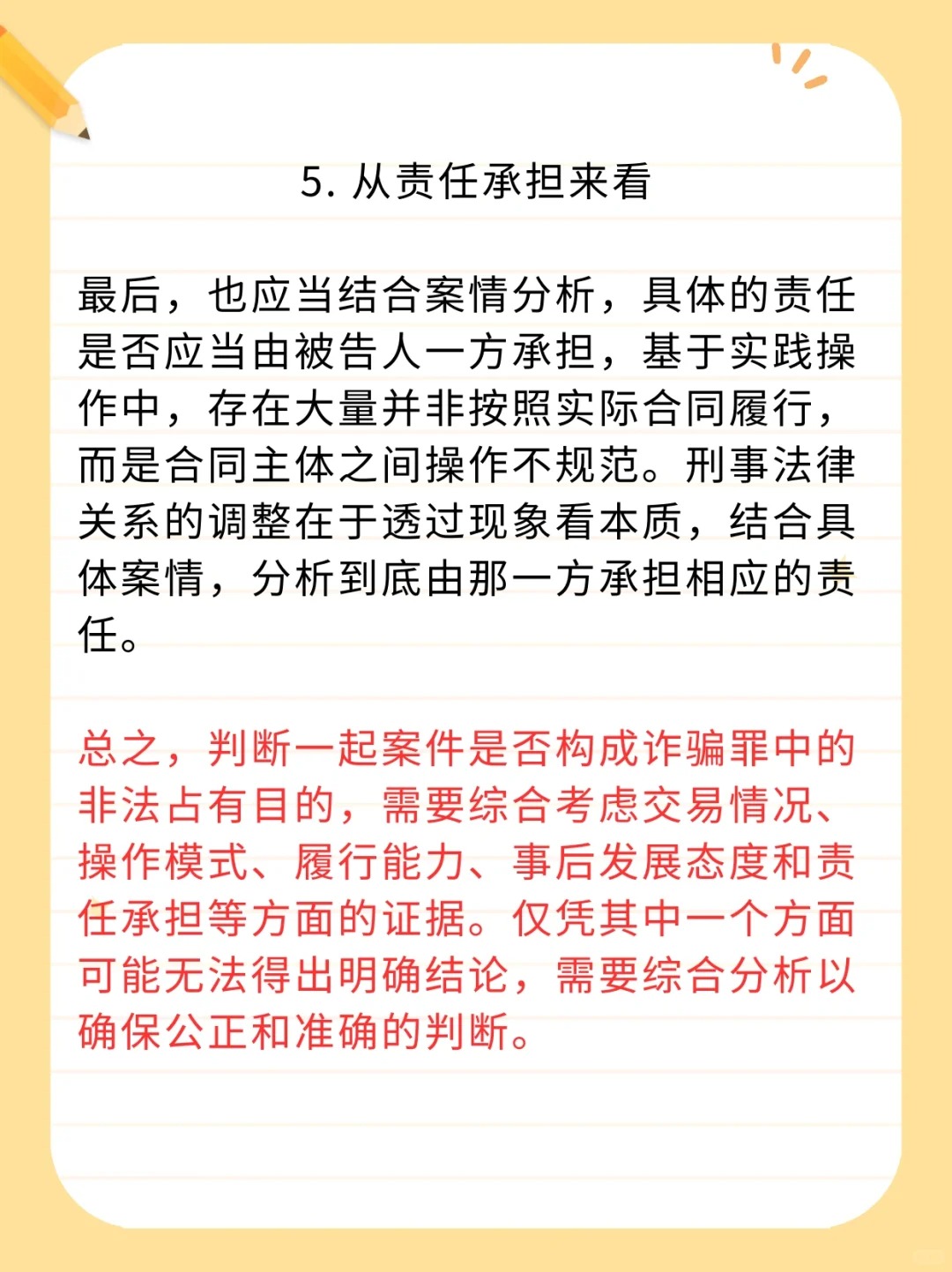 詐騙罪是一種嚴(yán)重的犯罪行為,指的是通過欺騙他人以獲取非法利益。在判斷是否具有非法占有的目的時(shí),我們可以從以下五個(gè)方面,是否具有非法占有目的,應(yīng)從有無履行能力、有無實(shí)際履約行為、沒有履行合同的原因、履行態(tài)度是否積極、行為人事后態(tài)度等方面加以判斷: 1. 從雙方整體交易情況來看 在評(píng)估一起案件是否構(gòu)成詐騙罪時(shí),需要考慮交易雙方之間的整體關(guān)系。如果交易存在大量的往來賬目,雙方合作一直很順暢,未履行部分實(shí)際占整體交易比例很小,那么很難認(rèn)定某一方具有非法占有的目的。 2. 從操作模式來看 詐騙罪通常涉及一系列精心策劃和實(shí)施的行動(dòng)。如果被告人采取了欺騙性的手段,包括虛假陳述、隱瞞真相、偽造文件等,這些行為都暗示著其具有非法占有的意圖。操作模式的欺騙性質(zhì)會(huì)增加判斷是否具有非法占有目的的證據(jù)。而如果雙方在履行合同的時(shí)候,均有瑕疵,如為了方便,便宜行事的,則可以認(rèn)定雙方實(shí)際上對(duì)這種操作模式存在認(rèn)同,不宜認(rèn)定為具有非法占有的目的。 3. 從履行能力來看 非法占有的目的還可以從被告人是否具備履行交易承諾的能力來判斷。如果被告人明知自己無法履行承諾,卻故意引導(dǎo)他人進(jìn)行交易,并在交易完成后以某種方式獲取非法利益,那么可以認(rèn)定其具有非法占有的目的。反之,如果沒有證據(jù)能證明被告人或公司存在資產(chǎn)負(fù)債,履行不能的情況,則不能證實(shí)被告人或公司喪失經(jīng)營(yíng)能力和無履行合同的能力。 4. 從事后發(fā)展態(tài)度來看 被告人在案件偵查和審理過程中的態(tài)度也提供了判斷非法占有目的的線索。如果被告人在被揭露后表現(xiàn)出逃避、推諉責(zé)任、拒不配合等消極態(tài)度,這可能暗示著其有意圖隱瞞真相并繼續(xù)保持非法占有。但如果被告人持續(xù)履行合同,償還部分欠款,或者提出提供抵押擔(dān)保等情況,則能反應(yīng)其具有歸還欠款的主觀意愿。 5. 從責(zé)任承擔(dān)來看 最后,也應(yīng)當(dāng)結(jié)合案情分析,具體的責(zé)任是否應(yīng)當(dāng)由被告人一方承擔(dān),基于實(shí)踐操作中,存在大量并非按照實(shí)際合同履行,而是合同主體之間操作不規(guī)范。刑事法律關(guān)系的調(diào)整在于透過現(xiàn)象看本質(zhì),結(jié)合具體案情,分析到底由那一方承擔(dān)相應(yīng)的責(zé)任。 總之,判斷一起案件是否構(gòu)成詐騙罪中的非法占有目的,需要綜合考慮交易情況、操作模式、履行能力、事后發(fā)展態(tài)度和責(zé)任承擔(dān)等方面的證據(jù)。僅憑其中一個(gè)方面可能無法得出明確結(jié)論,需要綜合分析以確保公正和準(zhǔn)確的判斷。
