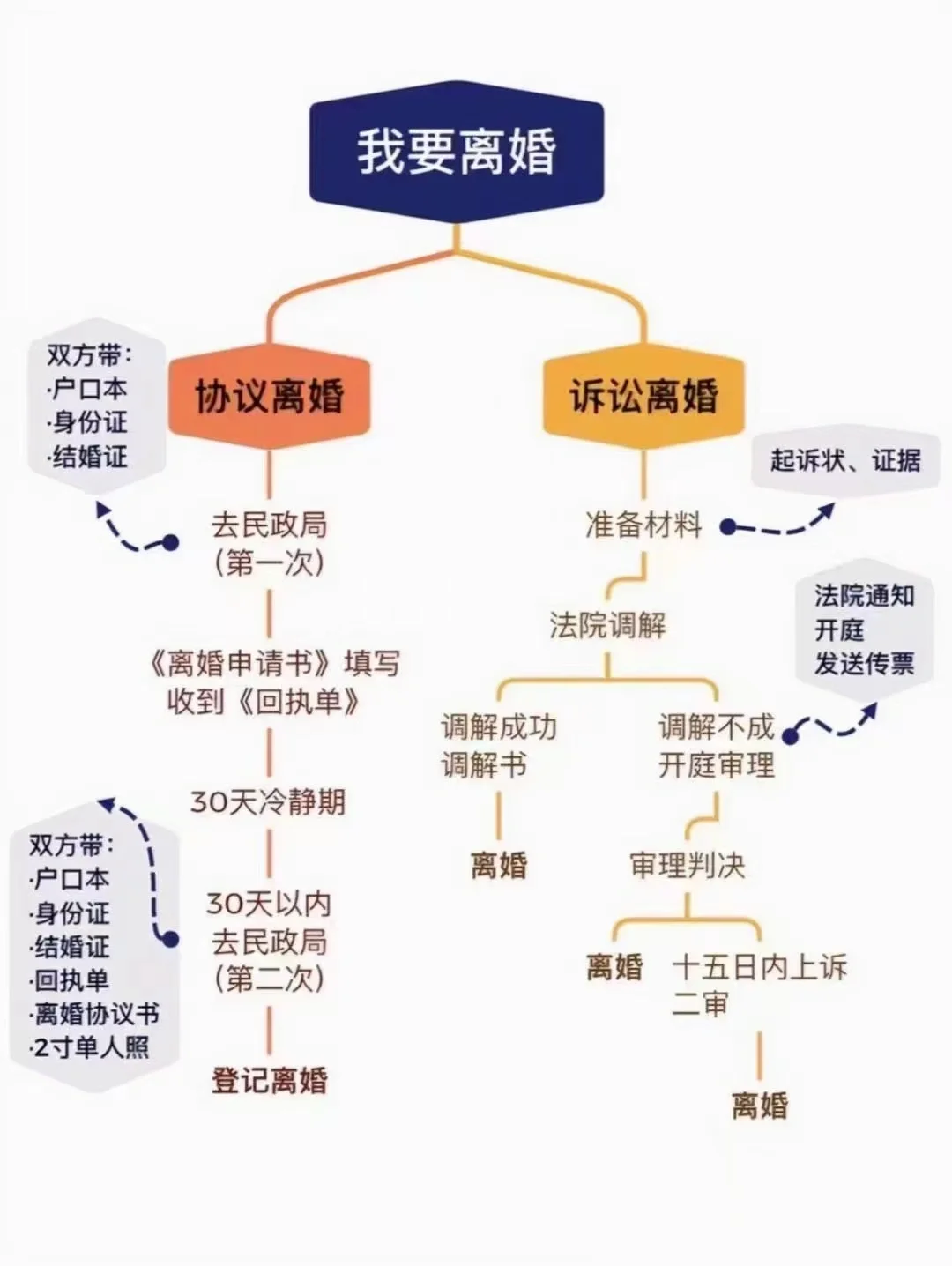最近,有很多關(guān)于離婚過程的詢問,提供了協(xié)議離婚和訴訟離婚過程的粗略流程圖供參考。