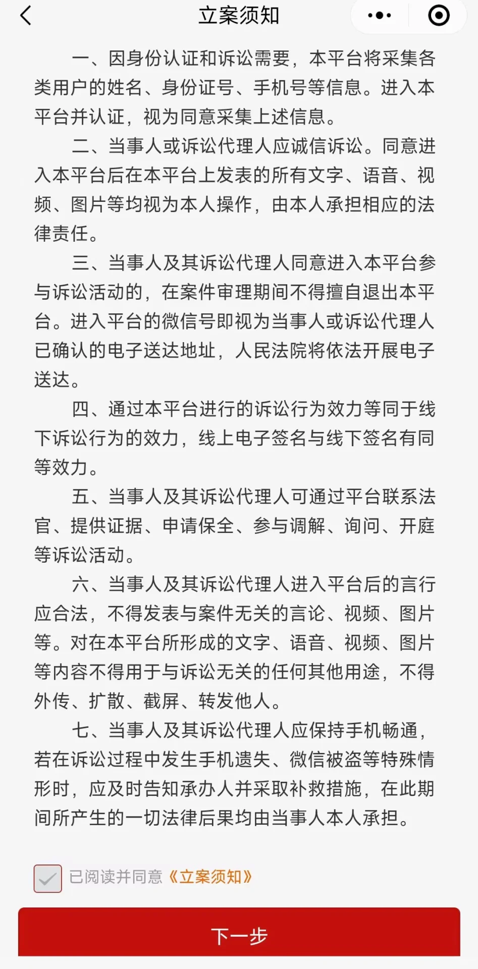 ? 事實(shí)上,為了給當(dāng)事人提供更快、更方便的維權(quán)渠道,國(guó)家目前可以在微信小程序上填寫(xiě)信息、立案。 ? 但是很多朋友都沒(méi)有接觸過(guò),所以現(xiàn)在我將與大家分享詳細(xì)而具體的步驟和注意事項(xiàng): ? 首先,在微信上搜索并打開(kāi)“人民法院在線服務(wù)”小程序,按照提示完成實(shí)名認(rèn)證,包括輸入身份信息、面部識(shí)別和簽名; ? 選擇管轄法院,然后點(diǎn)擊主頁(yè)上的“我的案件”,然后選擇有管轄權(quán)的法院所在的省份;應(yīng)該注意的是? 法院的選擇必須符合法律規(guī)定的管轄原則,否則可能導(dǎo)致立案失敗,例如小額民事案件選擇縣級(jí)法院; ? 啟動(dòng)立案申請(qǐng):點(diǎn)擊所選省份“人民法院網(wǎng)上服務(wù)”主頁(yè)上的“我要立案”,選擇“審判立案”,會(huì)彈出一個(gè)調(diào)解彈出窗口,詢(xún)問(wèn)您是否愿意接受第三方調(diào)解機(jī)構(gòu)。您可以根據(jù)自己的實(shí)際情況進(jìn)行選擇; ? 然后選擇“自己申請(qǐng)”,選擇“被起訴的具體法院”和案件類(lèi)型(如“民事一審”)。 ? 提交文件:按要求上傳投訴、身份證明、證據(jù)、送達(dá)地址確認(rèn)等相關(guān)文件; ? 添加目標(biāo)金額和參與方信息。系統(tǒng)會(huì)根據(jù)上傳的訴訟自動(dòng)識(shí)別當(dāng)事人信息,但最好進(jìn)去確認(rèn)信息是否正確; ? 提交申請(qǐng):完成以上步驟后,點(diǎn)擊頁(yè)面右下角的“提交”申請(qǐng),即可完成在線備案。提交后,您可以在迷你程序中查看審查結(jié)果,并根據(jù)回復(fù)內(nèi)容將訴訟材料郵寄到法院。郵寄的材料應(yīng)與上傳的訴訟、身份證明和證據(jù)材料一致。