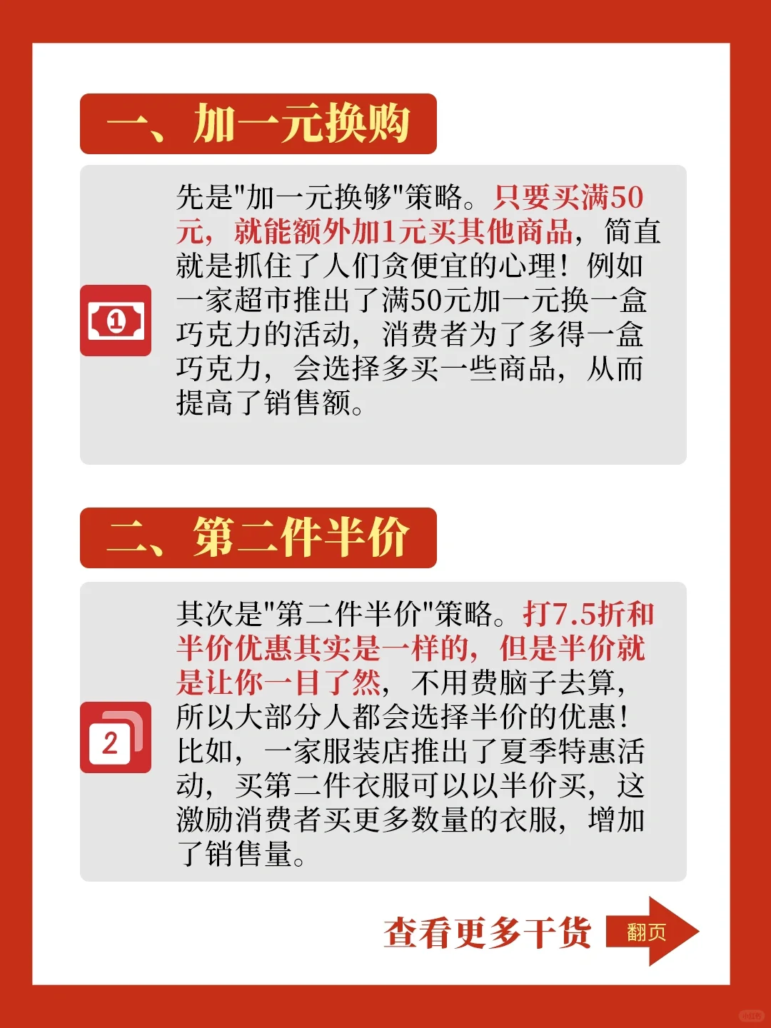 今天我想揭開營銷的真相!說到這些營銷策略,成功利用人性中愛占優(yōu)勢的弱點(diǎn),你可以學(xué)習(xí)如何在私域營銷中提高50%的轉(zhuǎn)化率。 首先,有“加一元換一元”的策略。只要購買達(dá)到50元,就可以額外增加1元購買其他產(chǎn)品,這簡直抓住了人們對廉價商品的貪婪!例如,一家超市推出了一項(xiàng)促銷活動,增加一元錢可以換取一盒50元以上的巧克力。為了多買一盒巧克力,消費(fèi)者會選擇購買更多的產(chǎn)品,從而增加銷售額。 其次是“第二項(xiàng)半價”策略。七五折和半價優(yōu)惠其實(shí)是一樣的,但半價只是為了一目了然,不需要思考,所以大多數(shù)人都會選擇半價優(yōu)惠!例如,一家服裝店推出了夏季折扣,第二件衣服可以半價購買,這激勵了消費(fèi)者購買更多衣服,并增加了銷售額。 “集中訂單、降低成本”的“三R”戰(zhàn)略是促進(jìn)消費(fèi)的常用方式。只要你買了一定的量,你就可以減少一些錢,即使你不急于購買這些產(chǎn)品,但總的來說,你仍然覺得自己有優(yōu)勢。例如,為了鼓勵消費(fèi)者購買更多的產(chǎn)品,家電店為1000元以上的消費(fèi)者提供了100元的折扣。為了享受降價,消費(fèi)者會選擇購買更多的產(chǎn)品,這會提高每位顧客的單價。 “限時促銷,隨送隨取”的策略也很常見。他們會拿出一些庫存產(chǎn)品作為禮物,這樣可以增加在售產(chǎn)品的數(shù)量,讓你覺得你仍然可以以原價獲得禮物,這是一個雙贏的局面!例如,一家美容院推出了限時促銷活動,為任何護(hù)膚包贈送價值200元的禮品套裝,這刺激了消費(fèi)者的購買欲望,提高了產(chǎn)品銷量。 將小型和大型產(chǎn)品結(jié)合銷售的策略也有許多實(shí)際應(yīng)用。例如,一家咖啡連鎖店推出了一套菜單,里面有小杯咖啡和餅干??Х茸畛醯膬r格是20元一杯,餅干的價格是10元一杯。組合套餐只需24元,比單獨(dú)購買便宜。這吸引了消費(fèi)者選擇購買套餐,并增加了銷售額。 “比高低賣”的策略主要是為了讓用戶比較并感覺到中等價位的套餐更具性價比。以手機(jī)市場為例,某手機(jī)品牌推出了2599元、2999元和3999元三種不同價位的手機(jī)。消費(fèi)者通過對比發(fā)現(xiàn),2999元的手機(jī)配置更具性價比,因此更傾向于購買該配置,從而增加了銷量。 當(dāng)然,每個行業(yè)和市場的情況不同,私域營銷人員需要根據(jù)實(shí)際情況靈活調(diào)整和創(chuàng)新。