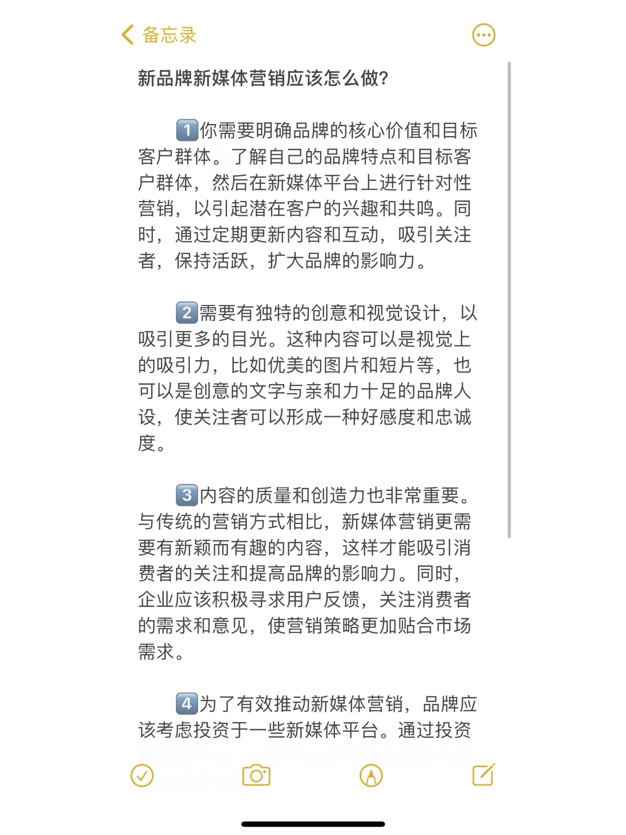 新品牌、新媒體營(yíng)銷應(yīng)該如何做 首先,我們需要明確產(chǎn)品的核心競(jìng)爭(zhēng)力,其次,我們需要確定產(chǎn)品的目標(biāo)受眾,這是我們?cè)诒姸囝悇e中脫穎而出的基礎(chǔ)。 其次,內(nèi)容的創(chuàng)意和視覺(jué)設(shè)計(jì)在推廣過(guò)程中也很重要,這是吸引客戶注意力的第一步。當(dāng)然,內(nèi)容的質(zhì)量不容忽視,好的內(nèi)容是吸引流量的關(guān)鍵。 最后,數(shù)據(jù)審查使我們能夠分析推廣情況,在哪些方面需要改進(jìn)和補(bǔ)充一目了然。
