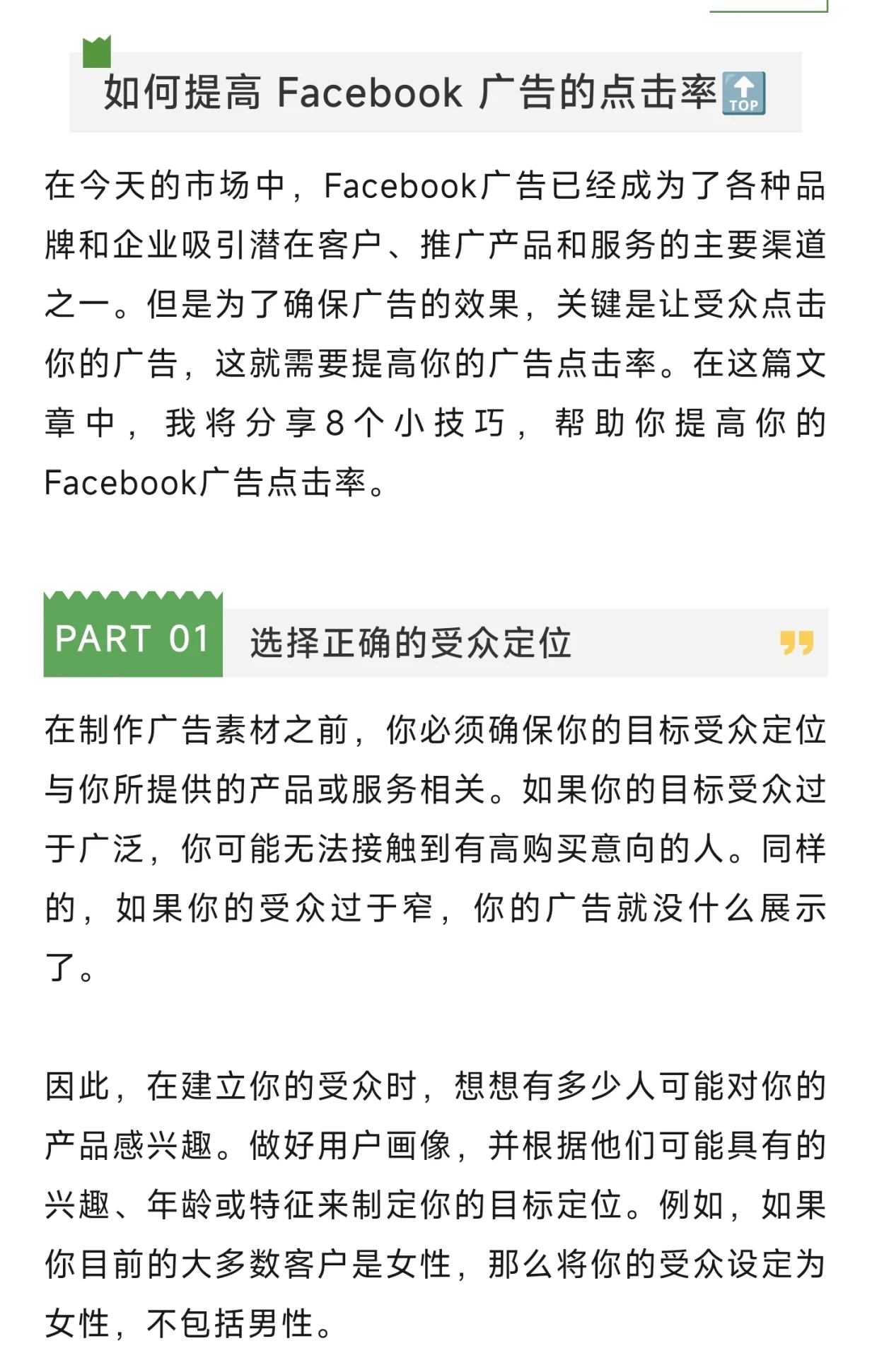 Facebook廣告點(diǎn)擊率CTR【全攻略】?