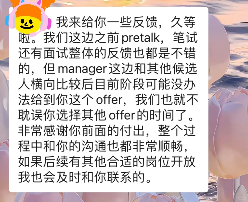 我發(fā)現(xiàn)小紅書(shū)上的保時(shí)捷咨詢(xún)會(huì)很少,哈哈。三輪之后,我將等待HR姐姐提供反饋后再寫(xiě)? 單面經(jīng)典(記憶版) 一輪 1.你熟悉保時(shí)捷還是ChatGPT 2.簡(jiǎn)單介紹chatgpt 3.聊天軟件和Siri有什么區(qū)別 4.總結(jié)chatgpt特點(diǎn)的三點(diǎn) 5、五一假唱、中美領(lǐng)導(dǎo)人會(huì)晤、抖音。。。(忘記了)你聽(tīng)說(shuō)過(guò)這三個(gè)新聞嗎 6.選擇一篇新聞文章并用英語(yǔ)介紹 7.案例研究-計(jì)算上海餐館的服務(wù)員人數(shù) 8.案例分析——位于陸家嘴的一家連鎖快餐店最近出現(xiàn)了利潤(rùn)下降的情況。分析可能的原因并提供相應(yīng)的解決方案 9.總結(jié)三點(diǎn)解決方案 兩輪 90分鐘筆試 三輪 1.自我介紹 2.深入研究我的簡(jiǎn)歷和我以前從事過(guò)的項(xiàng)目 3、汽車(chē)行業(yè)總體情況 4、咨詢(xún)行業(yè)意見(jiàn) 5、比亞迪降價(jià)事件 6、鋰電池行業(yè) 7.案例研究-計(jì)算蘋(píng)果鍵盤(pán)的銷(xiāo)售額 8.問(wèn)我以前在內(nèi)部戰(zhàn)略實(shí)習(xí)和咨詢(xún)實(shí)習(xí)的工作職責(zé),我覺(jué)得有什么不同 9.反問(wèn) 可能存在一些類(lèi)似的問(wèn)題。由于這是一個(gè)追溯版本,在具體細(xì)節(jié)上可能存在一些差異??傮w面試體驗(yàn)感覺(jué)很專(zhuān)業(yè),因?yàn)槲矣涘e(cuò)了雙方的時(shí)間,HR姐姐也說(shuō)沒(méi)關(guān)系。企業(yè)的專(zhuān)業(yè)性和人文關(guān)懷都很好,但遺憾的是,我最終沒(méi)能做到,但經(jīng)過(guò)這個(gè)過(guò)程,我覺(jué)得自己很好!我希望將來(lái)會(huì)有機(jī)會(huì)~