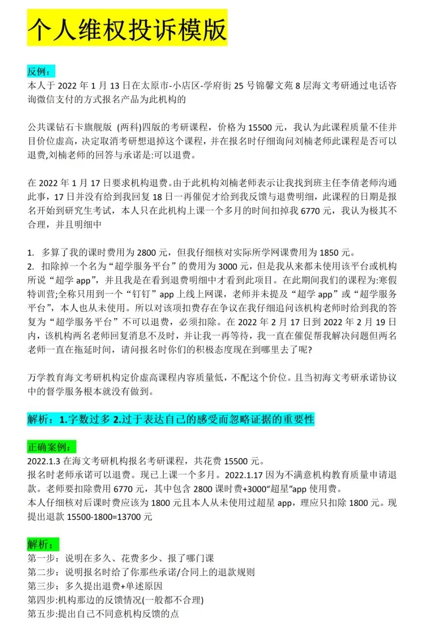 紅薯朋友們,遇到教培機(jī)構(gòu)退款、健身房費(fèi)用、醫(yī)美費(fèi)用、情感機(jī)構(gòu)退款等問(wèn)題時(shí),千萬(wàn)不要光靠12315消費(fèi)者維權(quán)投訴!我在這里給大家介紹幾個(gè)快速投訴渠道,可能比12315處理投訴更高效、更有效!希望這些建議能對(duì)大家有所幫助 一? 國(guó)醫(yī)院客戶(帶迷你程序): 打開(kāi)后,選擇“我想離開(kāi)嚴(yán)”功能,根據(jù)需要填寫(xiě)信息,然后提交。 二? Leader L平臺(tái)(帶迷你程序): 無(wú)良商人反對(duì)地方領(lǐng)導(dǎo)人的行為 只要你提交,你就可以得到處理,它不會(huì)白白結(jié)束。 三? 黑貓投訴平臺(tái)(包含迷你程序和應(yīng)用程序): 提交必要的證據(jù),如訂單號(hào)、付款憑證、相關(guān)截圖等,按照頁(yè)面上的說(shuō)明完成并提交。 四? 消費(fèi)者保險(xiǎn)(帶迷你程序): 輸入申請(qǐng)后,找到并點(diǎn)擊底部菜單中的“投訴”,填寫(xiě)所需信息并提交。 這三種方法都很方便,只是提供了一些基本信息。只要您的問(wèn)題是真實(shí)的,并且符合投訴標(biāo)準(zhǔn),在大多數(shù)情況下都可以快速審查和批準(zhǔn)。 五? 政府Z心(帶迷你程序): 當(dāng)面臨企業(yè)問(wèn)題時(shí),選擇這個(gè)平臺(tái)很重要。他們的服務(wù)態(tài)度好,反應(yīng)比較快。 六? 消費(fèi)者保險(xiǎn)投訴(帶迷你程序): 主要負(fù)責(zé)處理消費(fèi)者投訴和舉報(bào),業(yè)務(wù)范圍廣,處理周期一般為7個(gè)工作日。