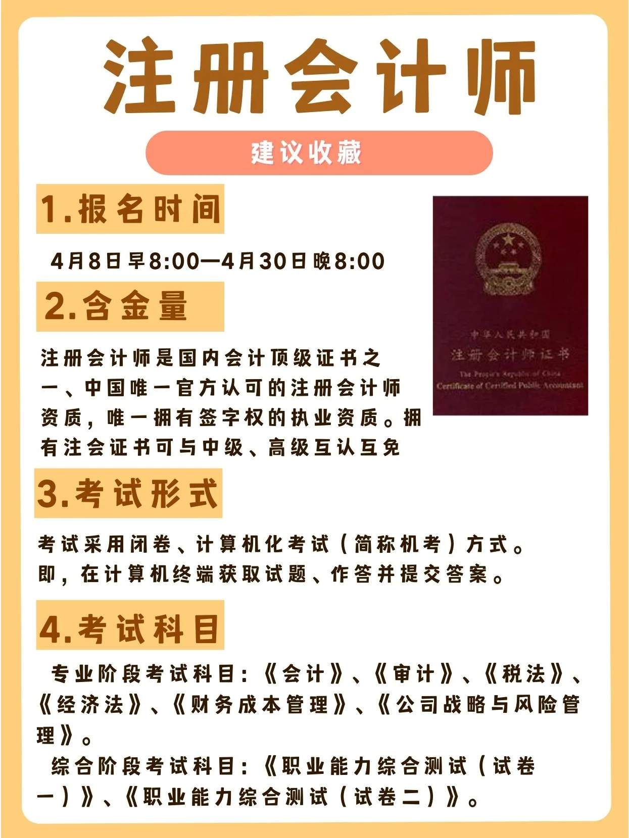 1.考試介紹 注冊會計師,又稱注冊會計師,是依法取得注冊會計師證書,受委托從事審計、會計咨詢、會計服務(wù)的執(zhí)業(yè)人員。 2.考試時間 專業(yè)階段考試將于2024年8月23日至25日舉行(包括部分考區(qū)的會計、財務(wù)成本管理、經(jīng)濟(jì)法和稅法兩門考試),綜合階段考試將在2024年08月24日舉行。 3.考試科目 注冊會計師考試分為專業(yè)階段考試和綜合階段考試。專業(yè)考試科目:會計、審計、財務(wù)成本管理、公司戰(zhàn)略與風(fēng)險管理、經(jīng)濟(jì)法、稅法。專業(yè)階段考試的申請人可以同時申請6門科目,也可以選擇申請某些科目。考生只有通過專業(yè)階段考試的所有科目后,才能參加綜合階段考試。 綜合階段考試科目:職業(yè)能力綜合測試(試卷一、試卷二)。 4.試題類型 注冊會計師考試采用閉卷、電腦化考試方式。 專業(yè)階段考試的題型主要分為三類: (1) 選擇題的重點(diǎn)是評估學(xué)生的知識理解能力。 (2) 簡答題(分析)和計算(分析),重點(diǎn)評估考生的基本應(yīng)用能力。 (3) 綜合題和案例分析題,重點(diǎn)考查考生的綜合應(yīng)用能力。 注:專業(yè)階段考試的6門科目中,每門科目的英語回答都有5分的額外分?jǐn)?shù),鼓勵考生使用英語回答。 參加注冊會計師考試24年的最后一點(diǎn)是你需要有耐心和毅力。備考注釋不是一件容易的事,需要投入大量的時間和精力。所以,我們必須堅持不懈,全力以赴,相信自己的實(shí)力和能力,相信我們一定會在廣汽考試中取得優(yōu)異成績!來吧