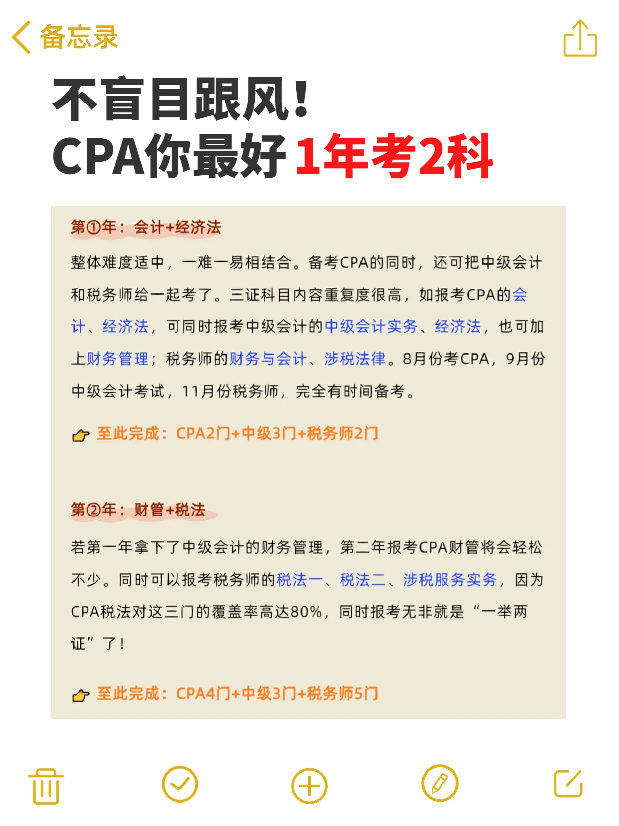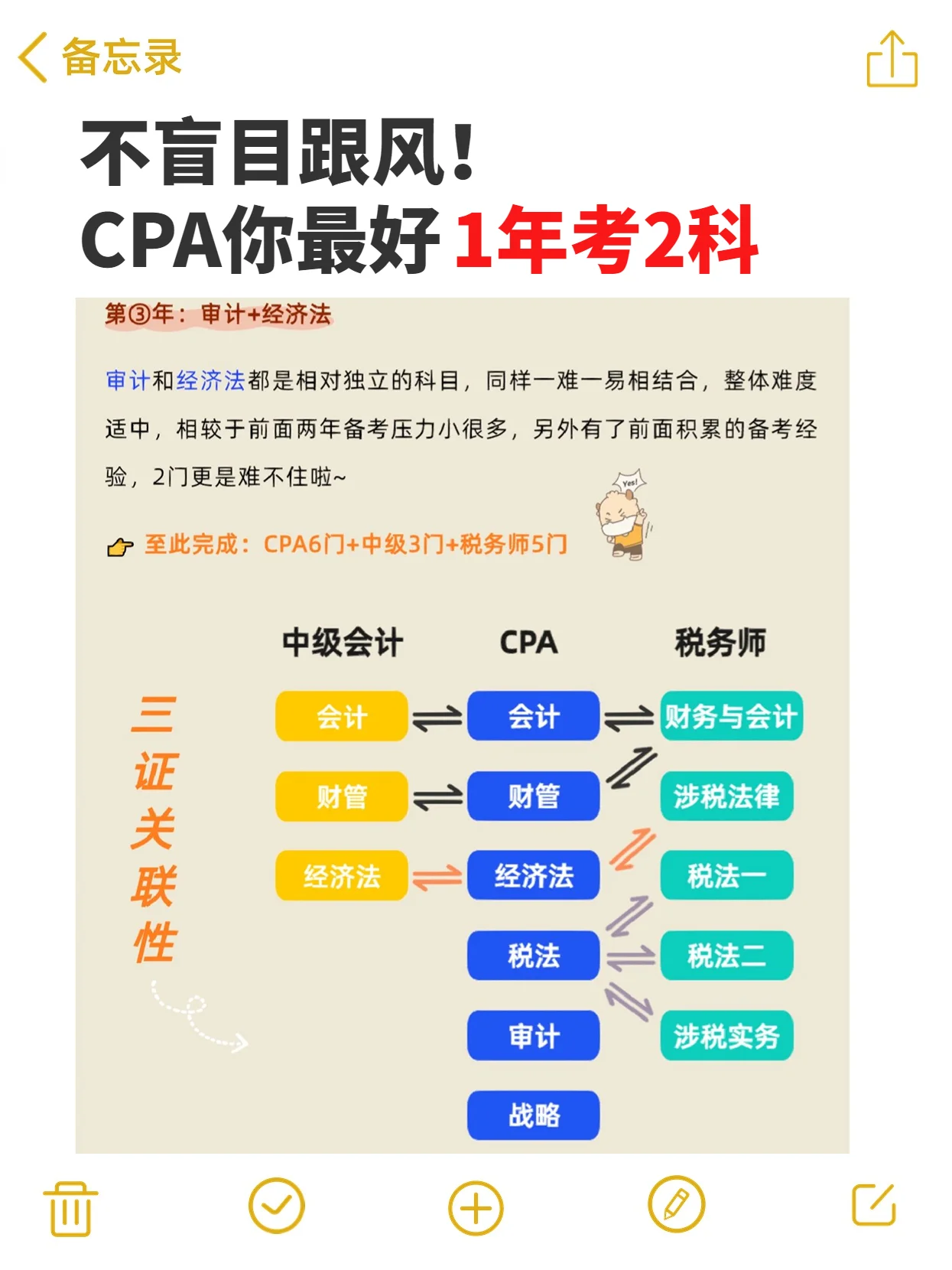 你有沒有看到有人一年要考五六門注冊會計師它真的很時髦,但不要盲目跟風!注冊會計師考試其實沒那么簡單!大多數考生選擇用2-3年的時間來完成專業(yè)階段的考試,這更安全。后期綜合階段沒有時間限制,所以你可以輕松應對! 聰明的準備,一年修兩門課,可以保證質量,獲得更多認證! ? 第一年:會計+經濟法 同時,為三名中級會計和稅務專業(yè)人士挑戰(zhàn)財務、會計和稅務服務的法律方面!一步多做是不是很劃算 ? 第二年:財務管理+稅法 繼續(xù)努力,以稅務會計的身份申請稅務第一、稅務第二、稅務相關服務實踐!一步一步朝著目標前進! ? 第三年:審計+戰(zhàn)略 最后一年,沖刺中級會計師、注冊會計師、稅務會計師三證!拿到三證三年了,是不是很有成就感呢 為什么我可以同時參加這么多考試圖2中每個主題之間的聯系已經得到了回答!快點仔細看一看!