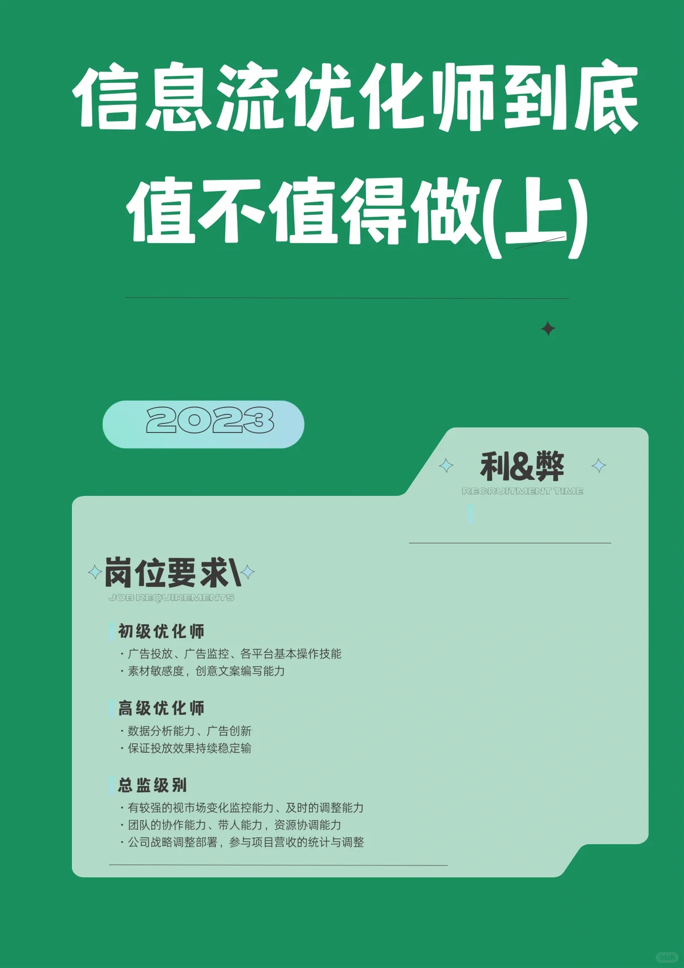 最近,越來越多的人有興趣了解信息流的位置。今天,讓我們來談?wù)勊欠裰档?,以及我們?nèi)绾味x它 評估某件事是否值得,本質(zhì)上是一個機會成本問題。如果有一個薪水更高、占用時間更少的工作選擇,那么做一名信息流優(yōu)化器是不值得的,否則也是值得的。通過權(quán)衡利弊,人們可以做出決定。 信息流行產(chǎn)業(yè)的優(yōu)勢和劣勢分為兩部分:第一部分和第二部分 [紅心R][紅心R][紅心R][紅心R的優(yōu)點] [一個R]快速加薪 在過去的幾年里,工資增長很快,實現(xiàn)5k-10k的飛躍并不困難。有愛心的人可以省錢。2019年同期進(jìn)入該行業(yè)的朋友,近年來以每年8-10萬元的速度積累。別小看,光北上廣深,有多少沒有背景的年輕人一年能凈賺10萬元如果你剛畢業(yè)就有三五十萬的年薪,那么你基本上可以忽略信息流! [2R]創(chuàng)業(yè)機會 我對互聯(lián)網(wǎng)的變化有著深刻的感受,有機會獨自工作。我有上一家公司的同事,其中至少有10人獨立工作或組建團隊創(chuàng)辦了公司。在與媒體聯(lián)系后,我發(fā)展了自己的客戶,沒有提供運營?,F(xiàn)在,我比較穩(wěn)定。三年的特殊情況并沒有阻礙在線廣告的發(fā)展,而是由于線下的各種限制,使信息流廣告變得更加重要。值得一提的是,這類業(yè)務(wù)屬于投資和邊際成本較低的業(yè)務(wù)。一般來說,一旦客戶合作,未來幾乎不需要投入成本。 思維模式的變化 我曾經(jīng)花了三個月的時間幫助一位客戶的婚紗店實現(xiàn)利潤翻倍。這包括客戶需求挖掘和匹配、業(yè)務(wù)利潤分析和高利潤群體探索,本質(zhì)上意味著數(shù)據(jù)統(tǒng)計和分析。不幸的是,客戶不記賬。如果他們有會計習(xí)慣,我相信通過分析得出的一些結(jié)論可以更好地提高他們的收入。后來,客戶打電話說,他的朋友想學(xué)習(xí)這些東西,但被拒絕了,因為他的朋友認(rèn)為數(shù)據(jù)統(tǒng)計和分析不專業(yè),他很難掌握。