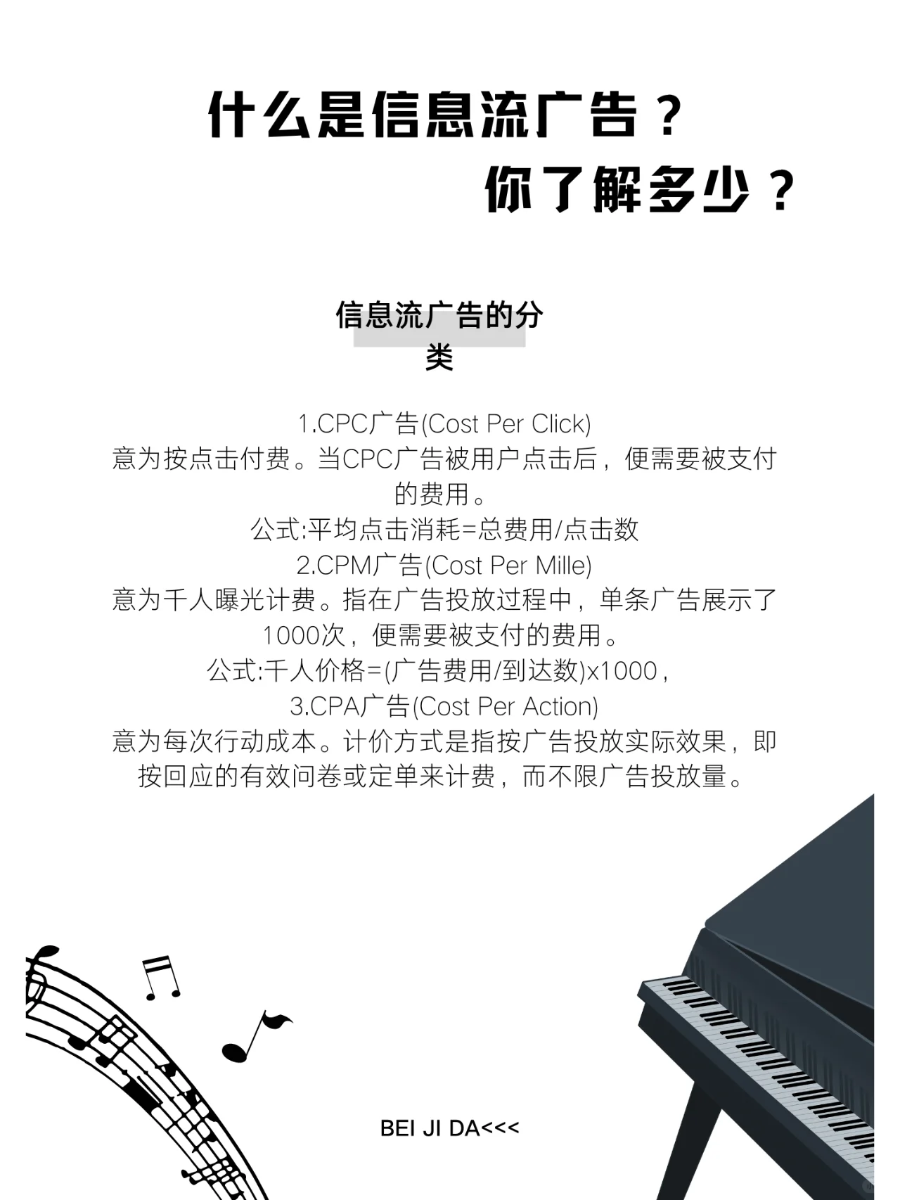 你好嬰兒我們在本期分享的是:什么是信息流廣告那些你還不懂的寶貝,趕緊收藏起來吧! 什么是信息流廣告 信息流廣告,顧名思義,就是一種融入信息流的廣告。它與常規(guī)廣告的不同之處在于,它利用大數(shù)據(jù)技術(shù),根據(jù)用戶瀏覽行為、個(gè)性化標(biāo)簽(年齡、性別、地區(qū)、教育程度、興趣等),實(shí)現(xiàn)用戶與廣告的智能匹配。被稱為最不像廣告的廣告。 信息流廣告的特點(diǎn): 1.獨(dú)創(chuàng)性強(qiáng) 散布在本機(jī)信息流中的廣告內(nèi)容看起來像內(nèi)容。 2.尋人廣告 當(dāng)用戶瀏覽新聞或社交更新時(shí),他們可以直接使用用戶檔案根據(jù)自己的信息找到合適的對(duì)象。 信息流廣告的分類 1.CPC廣告(每次點(diǎn)擊成本) 這意味著按點(diǎn)擊付費(fèi)。用戶點(diǎn)擊CPC廣告時(shí)需要支付的費(fèi)用。 公式:平均點(diǎn)擊量=總成本/點(diǎn)擊量 2.CPM廣告(每百萬成本) 這意味著向成千上萬的人收費(fèi)。單個(gè)廣告在廣告過程中顯示1000次所需支付的費(fèi)用。 公式:千人價(jià)格=(廣告費(fèi)/到達(dá)人數(shù))x1000, 3.注冊會(huì)計(jì)師廣告(每次行動(dòng)的成本) 這意味著每項(xiàng)行動(dòng)的成本。定價(jià)方式是指根據(jù)廣告投放的實(shí)際效果進(jìn)行收費(fèi),即根據(jù)有效問卷或訂單回復(fù)進(jìn)行收費(fèi),不限制廣告投放量。 好吧以上內(nèi)容就是這次關(guān)于什么是信息流廣告的干貨分享。歡迎大家踴躍留言討論!下次見