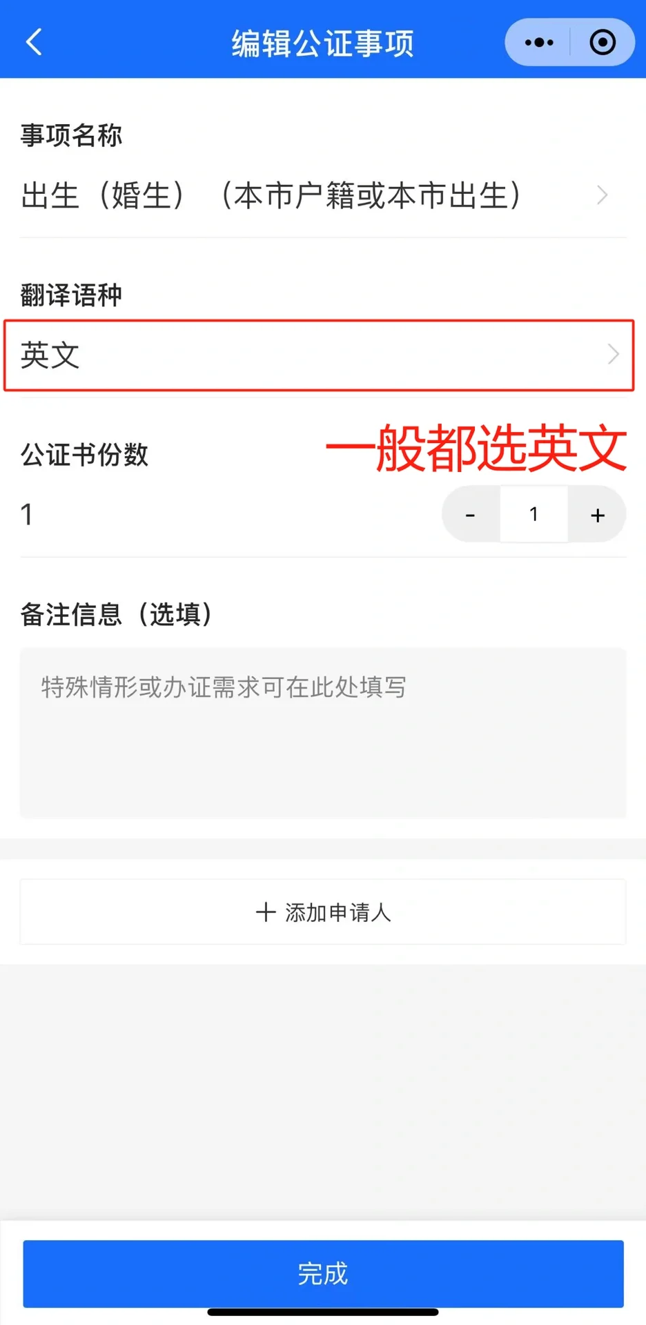 幫你節(jié)省幾百元的代理費(這可能會受到代理機構(gòu)的批評)。 圖2:在微信小程序上搜索“公證處”時,會有可以在線處理的單位。 圖3:選擇“公證申請” 圖4:填寫個人信息+面部識別 圖5-6:根據(jù)實際情況選擇使用目的和地點(即申請簽證所需的領事館所在國)。 認證部分取決于個人需求,大多數(shù)領事館都需要公證和認證。公證處可以協(xié)助辦理,所以我通常選擇代為辦理。根據(jù)我的付款詳細信息,不收取額外的代理費。公證處可以直接對公證材料蓋章,并提供給外事局一個有效期。 根據(jù)實際情況選擇常規(guī)零件或緊急零件 圖7-8:新增公證事項(如出生/家庭關系/無犯罪證明等) 如果申根簽證需要出生證明,則有必要在圖8中選擇“出生(已婚)”,其中包括照片版本。不要選擇為 出生醫(yī)學證明! 圖9:一般來說,英語就足夠了。 申請人根據(jù)實際情況進行選擇。如果是孩子的出生證明,申請人需要填寫孩子的姓名。如果你是單身,那么申請人應該自己填寫。 圖10:上傳所需資料(可拍照/相冊選擇/微信聊天記錄選擇),如圖所示。 在完成上述自我驗證并重新提交后,此時將有一個估計的金額 一般情況下,審查可以在同一天完成,并將通知付款。實際成本應基于此 如果申請出生公證,需要快遞照片(包括所需數(shù)量),通常每份4張2英寸的照片。 記得關注進度!接下來,讓我們等待證書的頒發(fā)! 建議在收到簽證申請后預留2周時間(可提前預約簽證,預留足夠的2周時間進行公證和認證)