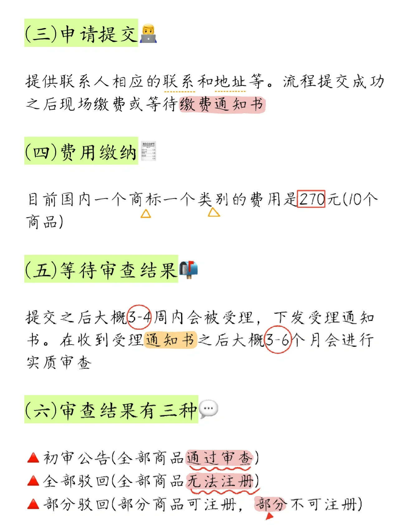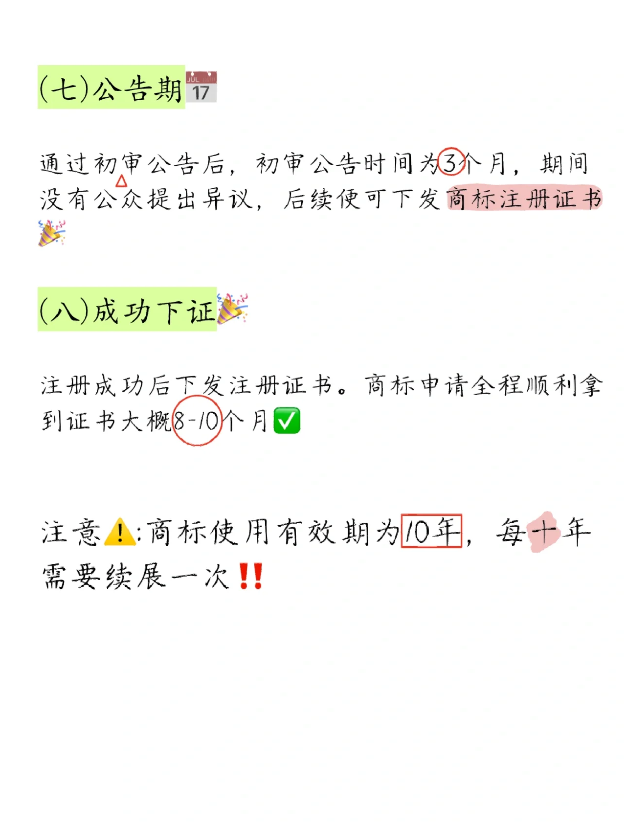 (1) 商標(biāo)搜索 首先,進(jìn)入中國國家知識產(chǎn)權(quán)局商標(biāo)局官網(wǎng),選擇商標(biāo)近似查詢 (2) 數(shù)據(jù)準(zhǔn)備 如果以公司名義申請,必須提供營業(yè)執(zhí)照副本; 如果以個人名義申請,必須提供其身份證打印件和個體工商戶營業(yè)執(zhí)照 提供商標(biāo)名稱?的設(shè)計? 確認(rèn)您的產(chǎn)品的國際分類,并選擇詳細(xì)的產(chǎn)品項目 如果有委托代理,則有必要在授權(quán)書上蓋章或簽字 (3) 申請?zhí)峤? 提供相應(yīng)的聯(lián)系人和地址。成功提交流程后,進(jìn)行現(xiàn)場付款或等待付款通知 (4) 費(fèi)用的支付 目前,中國每個類別一個商標(biāo)的成本為270元(10種產(chǎn)品) (5) 正在等待審查結(jié)果 提交后,它將在大約3-4周內(nèi)被接受,并將發(fā)出接受通知。實質(zhì)性審查將在收到驗收通知后約3-6個月內(nèi)進(jìn)行 (6) 審查結(jié)果有三種類型 預(yù)審公告(所有產(chǎn)品均已通過評審) 所有被拒絕(所有產(chǎn)品都無法注冊) 部分拒絕(有些產(chǎn)品可以注冊,有些不能注冊) (7) 公告期 初審公告通過后,初審公告時間為3個月,期間未提出公眾異議,后續(xù)可頒發(fā)商標(biāo)注冊證書 (8) 是否成功頒發(fā)證書 注冊成功后,頒發(fā)注冊證書。商標(biāo)申請過程順利,取證耗時約8-10個月 當(dāng)心: 該商標(biāo)有效期為10年,每10年需要更新一次??