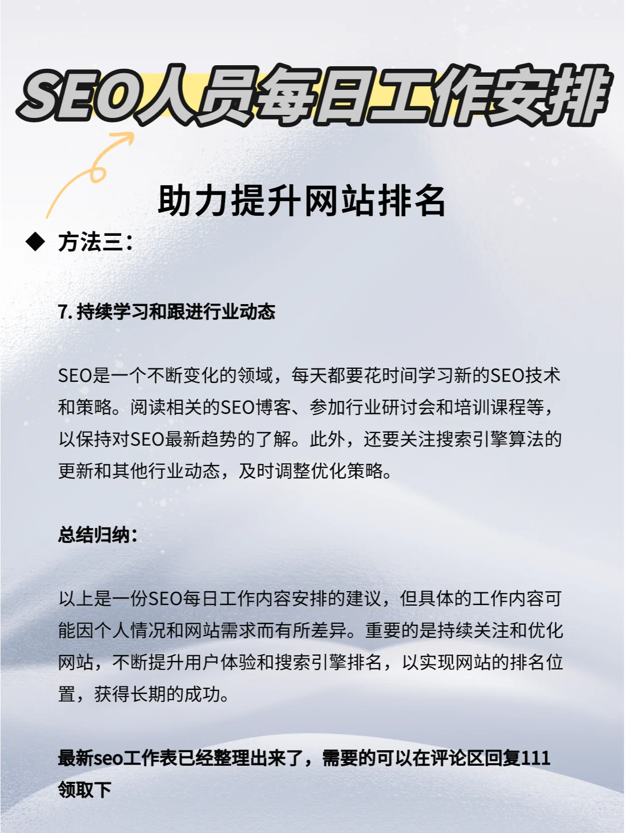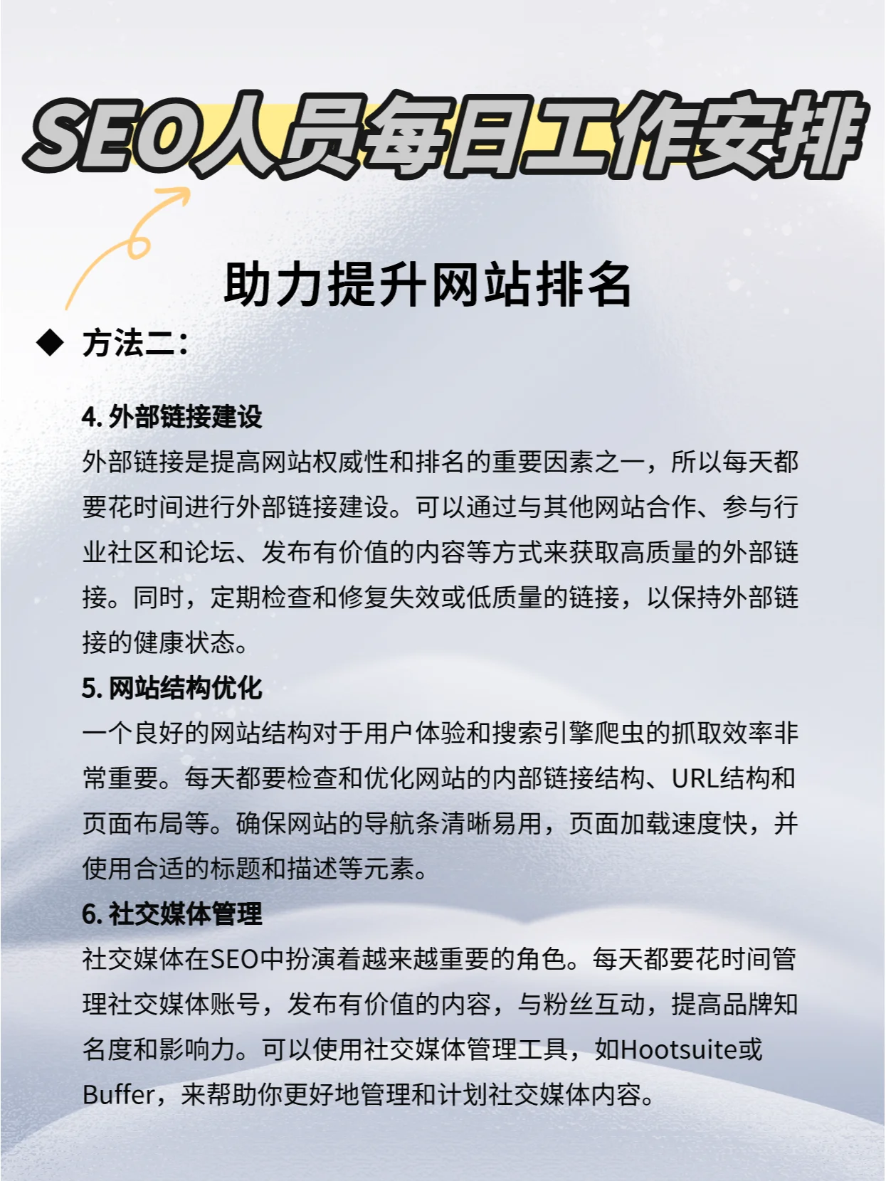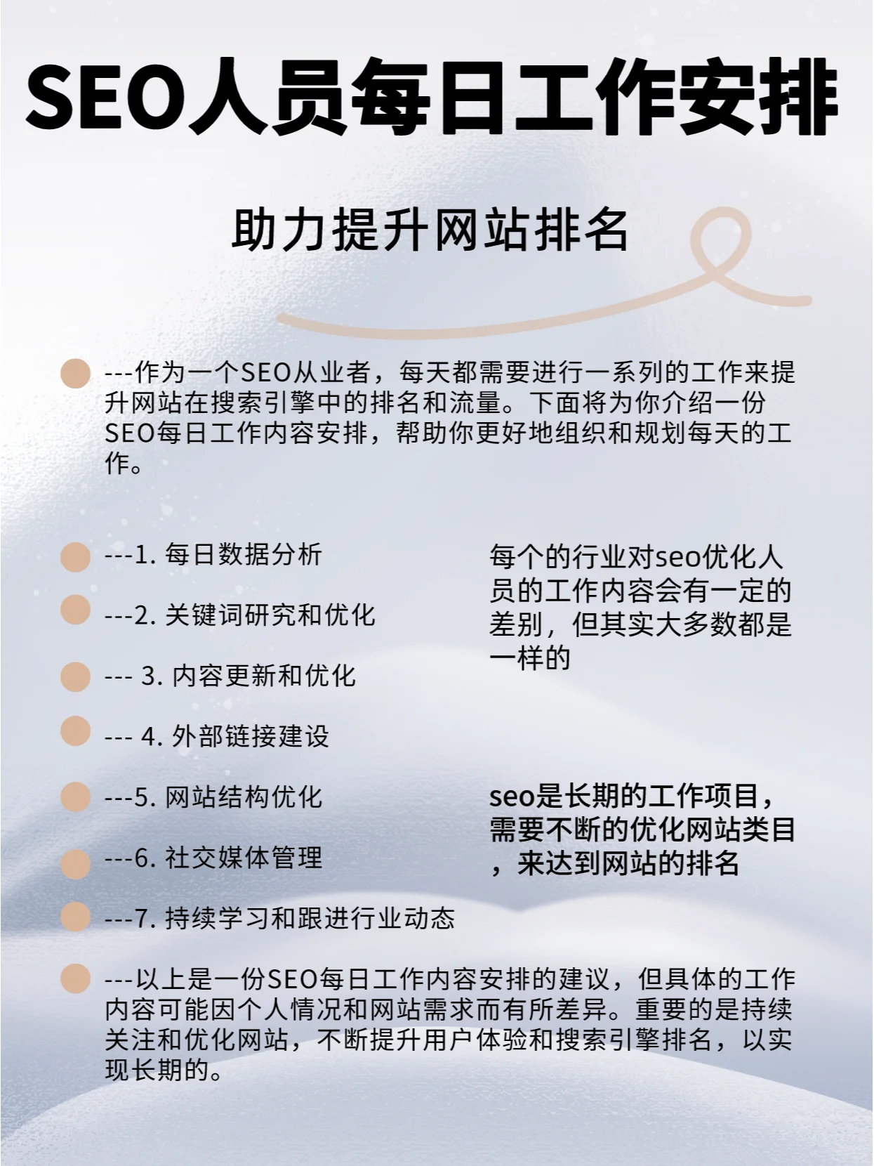 SEO每日工作內(nèi)容安排,如何提升網(wǎng)站排名