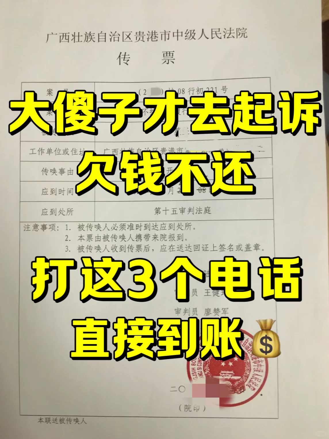 如果你一直拖延債務(wù),不見任何人,不接電話,拒絕還款,你該怎么辦你可以先打以下三個電話: 12333全國人力資源和社會保障服務(wù)熱線。老板扣工資、拖延加班費、不簽訂勞動合同、不繳納社保。我可以打電話投訴并幫助您恢復(fù)。 12348法律援助中心咨詢熱線。如果您的案件只是“欠款或不還款”,并且證據(jù)完整,您可以撥打12348法律援助中心咨詢熱線 12368國家法院系統(tǒng)公共服務(wù)電話。 然而,許多人報告說,他們無法接到一些投訴電話,而且反饋也很慢。沒事,今天來嗎教你幾個小技巧,讓那些不聽話還錢的人主動還錢! 有證據(jù)表明,對方只是依靠不歸還 如果有證據(jù),直接起訴即可。1萬元以下的,法院只需要50元,即使對方不還款,他們?nèi)匀豢梢陨暾垙娭茍?zhí)行并拿回錢。 沒有期票我怎么還貸款 您可以選擇與債務(wù)人私下溝通,確定還款期限和金額,并要求債務(wù)人提供還款計劃、還款協(xié)議等 如果不可能,債權(quán)人是否也可以取回所涉及的訴訟Y銀行轉(zhuǎn)賬憑證,或取得證人證言、錄音證據(jù)等作為立案材料和主要訴訟證據(jù)。 對方就是沒錢,他們該怎么辦 不管對方是否真的有錢,建議先提起訴訟,不要超過訴訟時效 接到判決書后,向法院申請強制執(zhí)行。如果另一方?jīng)]有可執(zhí)行的財產(chǎn),? 所以執(zhí)行法官會要求你終止本次執(zhí)行,并將被執(zhí)行人列入失信被執(zhí)行人名單。有了他的財產(chǎn)證據(jù)后,你可以再次申請強制執(zhí)行。
