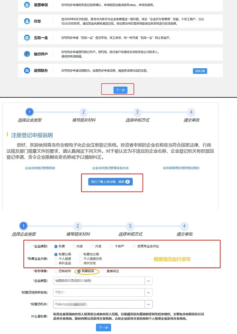 閑來(lái)無(wú)事,我?guī)团笥炎?cè)了一家青島地區(qū)的有限公司。 過(guò)程如下: 第一步是登錄青島的企業(yè)設(shè)立智能集成平臺(tái)-我想創(chuàng)業(yè)-我想申請(qǐng)創(chuàng)業(yè)-設(shè)立登記-下一步-我已經(jīng)明白了 第二步是選擇企業(yè)類(lèi)型、私營(yíng)企業(yè)類(lèi)別和名稱(chēng)信息( 我想選擇一個(gè)名字,因?yàn)楣久Q(chēng)需要審批。您可以多準(zhǔn)備幾個(gè)名稱(chēng)以防止重復(fù)。這包括企業(yè)類(lèi)型、戶(hù)籍所在地、登記機(jī)關(guān)-下一步-下一頁(yè) 第3步:填寫(xiě)所需名稱(chēng),并在批準(zhǔn)后進(jìn)入下一步 第四步:填寫(xiě)相關(guān)信息——董事會(huì)、監(jiān)事會(huì)、財(cái)務(wù)負(fù)責(zé)人 步驟5:申請(qǐng)銀行發(fā)票:所有這些選項(xiàng)都是可選的。取得營(yíng)業(yè)執(zhí)照后,您可以到大廳和銀行申請(qǐng)-提交審批 第六步要求提供房屋免費(fèi)使用證明和村委會(huì)頒發(fā)的房產(chǎn)證(如果有房產(chǎn)證,可以使用房產(chǎn)證) 提交后等待系統(tǒng)審查 第七步審核后,法定代表人和監(jiān)督員需要在青衣辦公室的電子簽名上簽字 一旦獲得批準(zhǔn),您可以直接前往大廳領(lǐng)取營(yíng)業(yè)執(zhí)照
