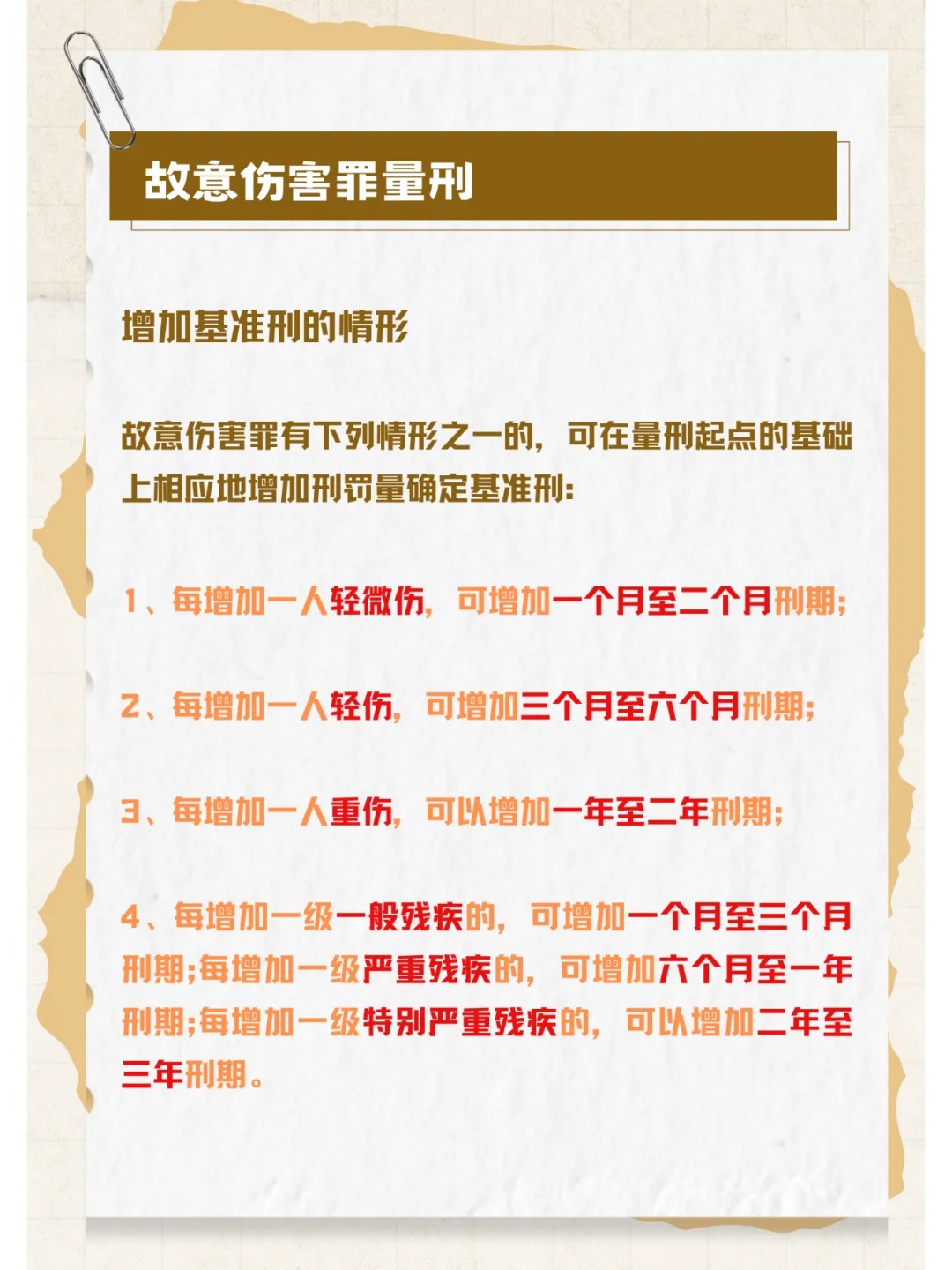 《刑法》第二百三十四條規(guī)定,故意傷害他人身體的,處三年以下有期徒刑、拘役或者管制。 犯前款罪,致人重傷的,處三年以上十年以下有期徒刑;致人死亡或者以特別殘忍手段致人重傷造成嚴(yán)重殘疾的,處十年以上有期徒刑、無期徒刑或者死刑。本法另有規(guī)定的,依照規(guī)定。 其中已滿14周歲不滿16周歲的自然人有故意傷害致人重傷或者死亡行為的,應(yīng)當(dāng)負(fù)刑事責(zé)任。 公安機(jī)關(guān)立案追溯標(biāo)準(zhǔn) 第二十八條 被害人傷情構(gòu)成輕傷、重傷或者死亡,需要追究犯罪嫌疑人刑事責(zé)任的,依照《中華人民共和國刑事訴訟法》的有關(guān)規(guī)定辦理。 第二十九條 根據(jù)《中華人民共和國刑法》第十三條及《中華人民共和國刑事訴訟法》第十五條第一項(xiàng)規(guī)定,對故意傷害他人致輕傷,情節(jié)顯著輕微、危害不大,不認(rèn)為是犯罪的,以及被害人傷情達(dá)不到輕傷的,應(yīng)當(dāng)依法予以治安管理處罰。 輕傷指各種致傷因素所致的原發(fā)性損傷或者由原發(fā)性損傷引起的并發(fā)癥,未危及生命;遺留組織器官結(jié)構(gòu)、功能輕度、中度損害或者影響容貌及明顯影響容貌。具體損傷程度依據(jù)《人體損傷程度鑒定標(biāo)準(zhǔn)》鑒定。 故意傷害罪量刑標(biāo)準(zhǔn): 1、構(gòu)成故意傷害罪的,根據(jù)下列情形在相應(yīng)的幅度內(nèi)確定量刑起點(diǎn): (1)故意傷害致一人輕傷的,在二年以下有期徒刑、拘役幅度內(nèi)確定量刑起點(diǎn)。 (2)故意傷害致一人重傷的,在三年至五年有期徒刑幅度內(nèi)確定量刑起點(diǎn)。 (3)以特別殘忍手段故意傷害致一人重傷,造成六級嚴(yán)重殘疾的,在十年至十三年有期徒刑幅度內(nèi)確定量刑起點(diǎn)。依法應(yīng)當(dāng)判處無期徒刑以上刑罰的除外。 2、在量刑起點(diǎn)的基礎(chǔ)上,根據(jù)傷害后果、傷殘等級、手段殘忍程度等其他影響犯罪構(gòu)成的犯罪事實(shí)增加刑罰量,確定基準(zhǔn)刑。 故意傷害致人輕傷的,傷殘程度可以在確定量刑起點(diǎn)時(shí)考慮,或者作為調(diào)節(jié)基準(zhǔn)刑的量刑情節(jié)。 3、構(gòu)成故意傷害罪的,綜合考慮故意傷害的起因、手段、危害后果、賠償諒解等犯罪事實(shí)、量刑情節(jié),以及被告人的主觀惡性、人身危險(xiǎn)性、認(rèn)罪悔罪表現(xiàn)等因素,決定緩刑的適用。 如果您有類似的法律問題需要幫助,歡迎隨時(shí)聯(lián)系我們。