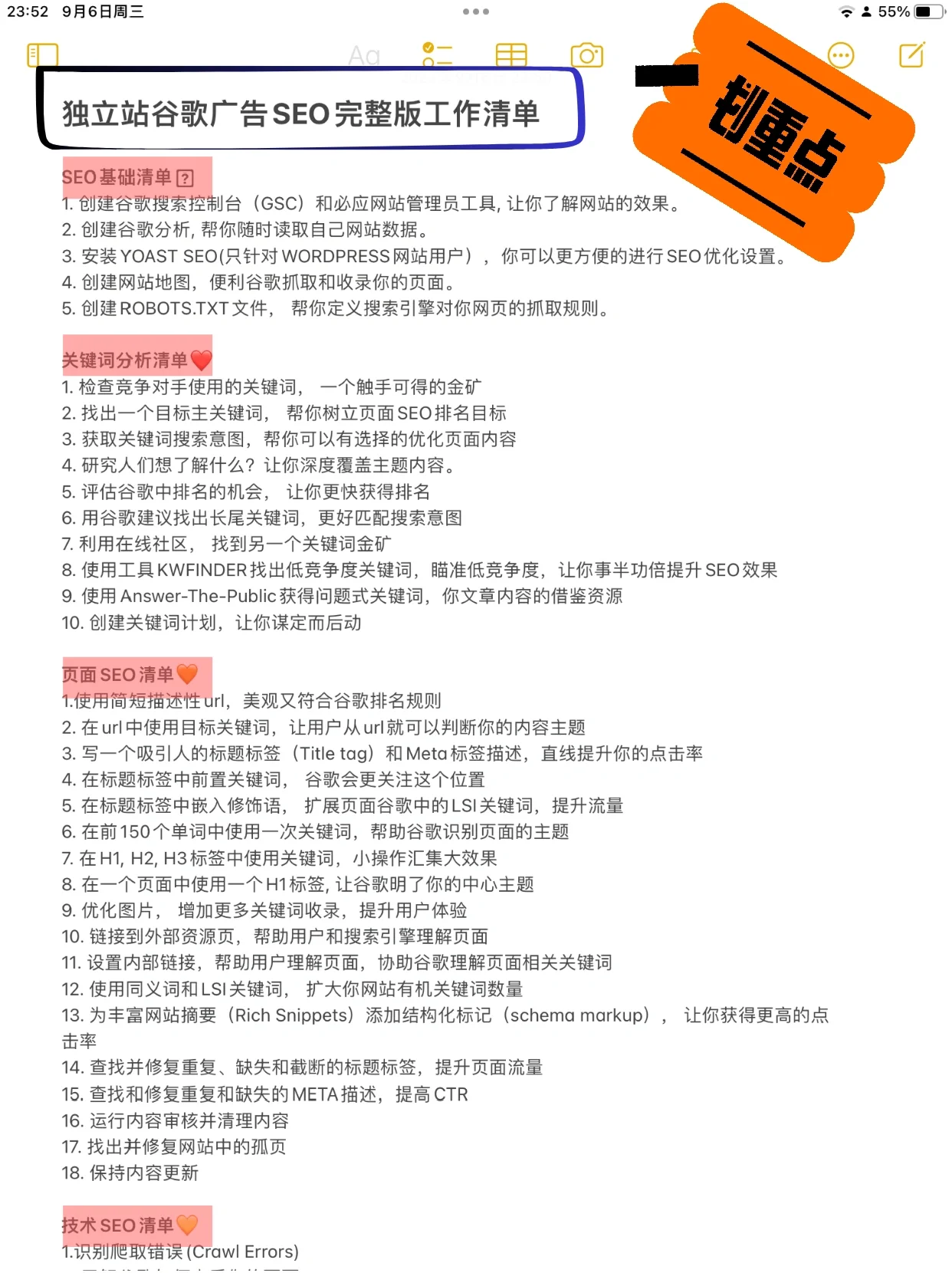 標(biāo)題:獨(dú)立站谷歌廣告SEO完整版工作清單