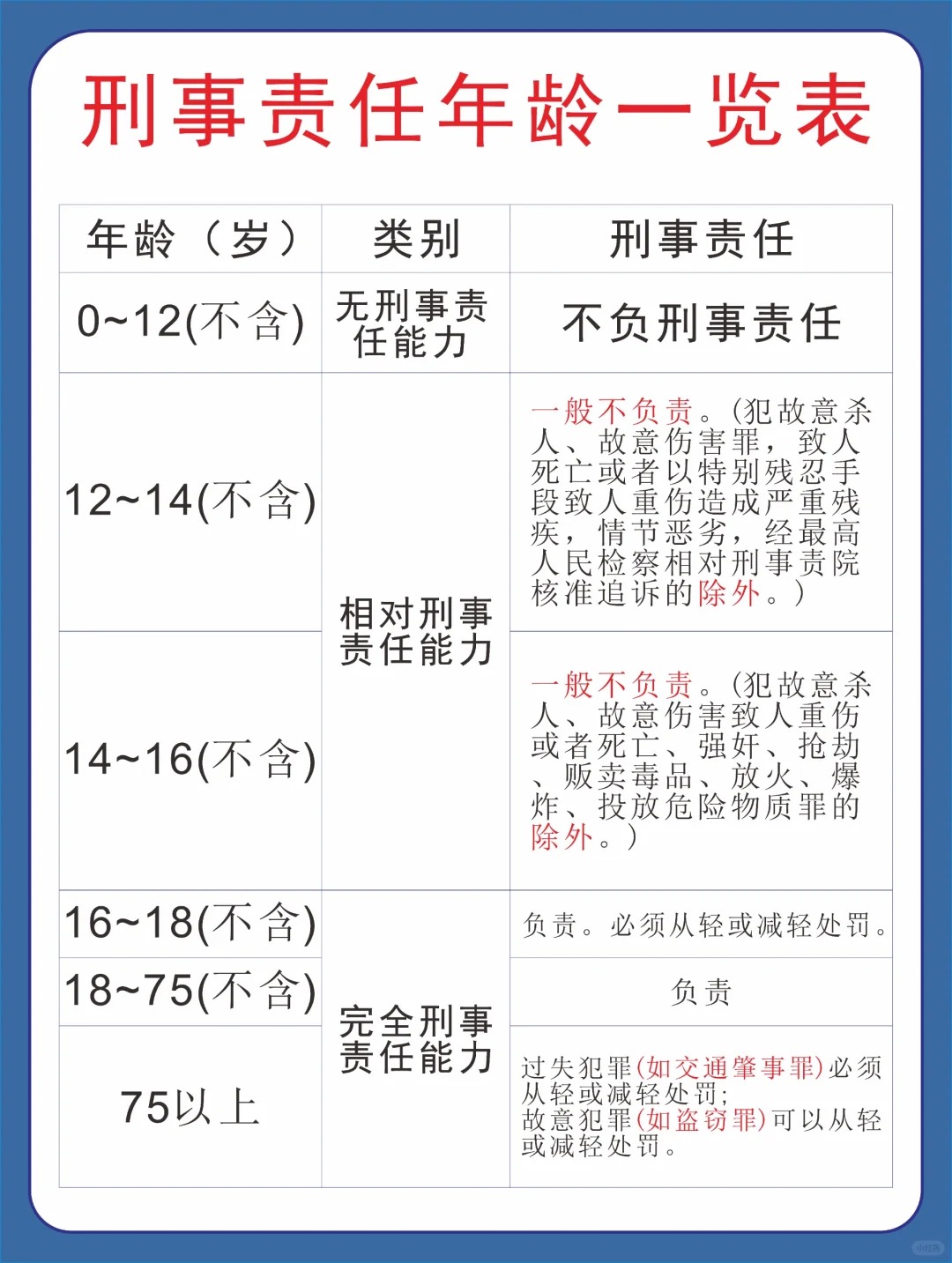 不滿14歲的未成年人殺人案件再次讓刑事責(zé)任年齡成為焦點話題。 在刑法中規(guī)定刑事責(zé)任年齡,理論依據(jù)在于未達(dá)責(zé)任年齡的孩子缺乏是非對錯的辨認(rèn)能力或控制能力,因此對他們的刑事懲罰沒有意義。 我國刑法曾經(jīng)以14周歲作為有無責(zé)任年齡的標(biāo)準(zhǔn),在法律上推定不滿14周歲,沒有是非對錯的辨認(rèn)能力或控制能力,這種法律邏輯清晰明了。 但是,法律的生命是經(jīng)驗而非邏輯。如果經(jīng)驗事實不斷地證明法律邏輯存在問題,那么這種邏輯命題就值得修正。從發(fā)生過的多起不滿14歲的孩子實施殺人等嚴(yán)重犯罪的案件來看,認(rèn)為他們?nèi)狈κ欠菍﹀e的辨認(rèn)能力或控制能力的法律邏輯很難服眾。 2021年《刑法修正案(十一)》就借鑒了英美法系的惡意年齡補足制度。它并未整體性下調(diào)刑事責(zé)任年齡,只是對刑事責(zé)任年齡做出了一種例外性下調(diào),對于兩種特定的犯罪經(jīng)過特定的程序,可以追究刑事責(zé)任。對于已滿12周歲不滿14周歲的人,如果實施了故意殺人、故意傷害致人死亡或者以特別殘忍手段致人重傷造成嚴(yán)重殘疾的行為,同時達(dá)到情節(jié)惡劣的程度,對于特定犯罪,經(jīng)最高人民檢察院核準(zhǔn)追訴的,應(yīng)當(dāng)負(fù)刑事責(zé)任。 目前我國關(guān)于刑事責(zé)任劃分如下: 1、不滿12周歲的人(不滿12不包含12周歲),不承擔(dān)刑事責(zé)任 不滿12周歲的人只是不承擔(dān)刑事責(zé)任,并非所有責(zé)任都不承擔(dān)。 2、已滿12周歲不滿14周歲的人承擔(dān)刑事責(zé)任的條件 犯故意殺人、故意傷害罪,致人死亡或者以特別殘忍手段致人重傷造成嚴(yán)重殘疾,情節(jié)惡劣,經(jīng)最高人民檢察院核準(zhǔn)追訴的應(yīng)當(dāng)負(fù)刑事責(zé)任。 3、已滿14周歲不滿16周歲的人承擔(dān)刑事責(zé)任的條件 僅對8種嚴(yán)重犯罪負(fù)刑事責(zé)任:故意殺人、故意傷害致人重傷或死亡、搶劫、強奸、販賣毒品、防火、爆炸、投放危險物質(zhì)(燒、 殺、淫、掠、傷、投、爆、毒)。 4、已滿16周歲的人,應(yīng)當(dāng)承擔(dān)刑事責(zé)任 未成年人犯罪,應(yīng)當(dāng)從輕或者減輕處罰。因不滿16周歲不予刑事處罰的,責(zé)令其父母或其他監(jiān)護(hù)人加以管教;在必要的時候,依法進(jìn)行專門的矯治教育。 5、已滿75周歲的人 故意犯罪的,可以從輕或者減輕處罰;過失犯罪的,應(yīng)當(dāng)從輕或者減輕處罰。
