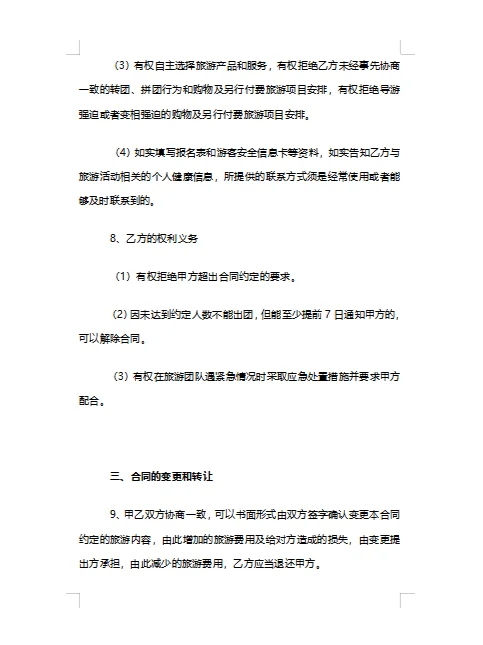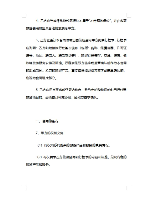 起草國(guó)內(nèi)旅游集團(tuán)合同協(xié)議有哪些秘密,讓您的旅行團(tuán)更加可靠! 大家好,我是你們的小紅書法與法律博主。今天小編就和大家聊一聊國(guó)內(nèi)旅游組團(tuán)合同協(xié)議起草的要點(diǎn)!你想要一個(gè)愉快和安全的旅行體驗(yàn)嗎你一定不能錯(cuò)過這個(gè)充滿寶貴信息的分享! 要點(diǎn)一:明確雙方信息和群組細(xì)節(jié) 在合同開始時(shí),應(yīng)明確列出甲方(旅行社)和乙方(游客)的基本信息,以確保雙方身份清楚。接下來,詳細(xì)描述旅游團(tuán)的詳細(xì)情況,包括團(tuán)名、出發(fā)日期、返回日期、行程安排等,讓游客對(duì)整個(gè)行程有一個(gè)全面的了解。 要點(diǎn)2:成本明細(xì)和付款方式 合同必須詳細(xì)說明旅游費(fèi)用,包括團(tuán)費(fèi)、門票費(fèi)、餐飲費(fèi)、住宿費(fèi)等,以確保游客對(duì)每筆費(fèi)用的目的地有清楚的了解。另外,請(qǐng)說明付款方式,是全額付款還是分期付款它應(yīng)該寫得清楚,以避免在后期發(fā)生爭(zhēng)議。 要點(diǎn)三:服務(wù)標(biāo)準(zhǔn)和質(zhì)量保證 在合同中明確規(guī)定旅行社提供的服務(wù)標(biāo)準(zhǔn),如導(dǎo)游的資質(zhì)和經(jīng)驗(yàn)、車輛的舒適性和安全性、住宿條件等。同時(shí),它強(qiáng)調(diào)旅行社對(duì)服務(wù)質(zhì)量的承諾,確保游客在旅行中享受高質(zhì)量的服務(wù)。 要點(diǎn)四:退改政策與違約責(zé)任 提供詳細(xì)的往返政策清單,包括條件、費(fèi)用等,為游客調(diào)整行程提供明確依據(jù)。同時(shí),明確雙方的違約責(zé)任。旅行社未按約定提供服務(wù),或者游客未按時(shí)赴約的,必須有明確的違約責(zé)任條款。 要點(diǎn)五:保險(xiǎn)和安全保護(hù) 在合同中,明確旅行社為游客購(gòu)買的保險(xiǎn)類型和金額,使他們?cè)诼眯兄懈邪踩?。同時(shí),它強(qiáng)調(diào)旅行社的安全措施,如應(yīng)急計(jì)劃、緊急聯(lián)系方式等,以確保游客在發(fā)生緊急情況時(shí)能夠得到及時(shí)有效的幫助。 要點(diǎn)六:爭(zhēng)議解決方法 不要忘記在合同中規(guī)定爭(zhēng)議解決方法,如談判、調(diào)解或訴訟。這樣,當(dāng)雙方發(fā)生爭(zhēng)端時(shí),可以迅速找到解決方案,避免沖突升級(jí)。 提示:在起草合同時(shí),必須遵守相關(guān)法律、法規(guī)和行業(yè)規(guī)范,以確保合同內(nèi)容合法合規(guī)。同時(shí),建議聘請(qǐng)專業(yè)律師對(duì)合同進(jìn)行審查,確保所有條款嚴(yán)格完整。 好了,今天的分享就到這里啦!希望這些要點(diǎn)能幫助您起草一份安全可靠的國(guó)內(nèi)旅游團(tuán)協(xié)議,讓您的旅行更加愉快和放心!記得喜歡嗎最喜歡的是什么哦,下次你需要的時(shí)候可以很快找到它!