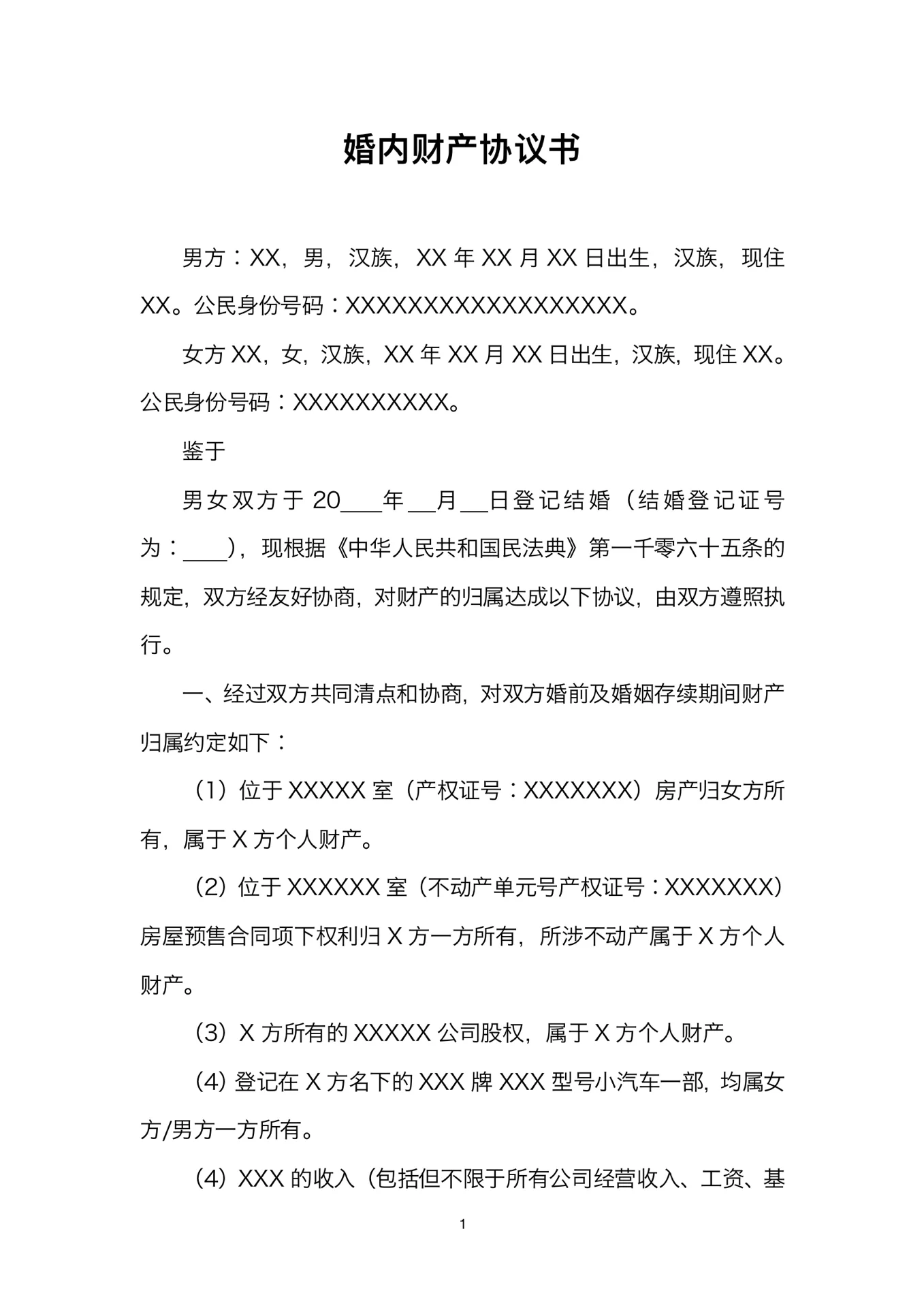 婚內(nèi)財(cái)產(chǎn)協(xié)議