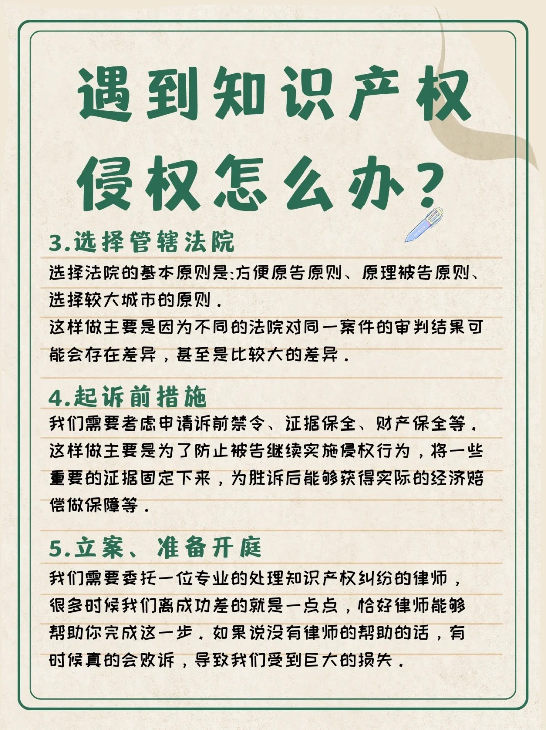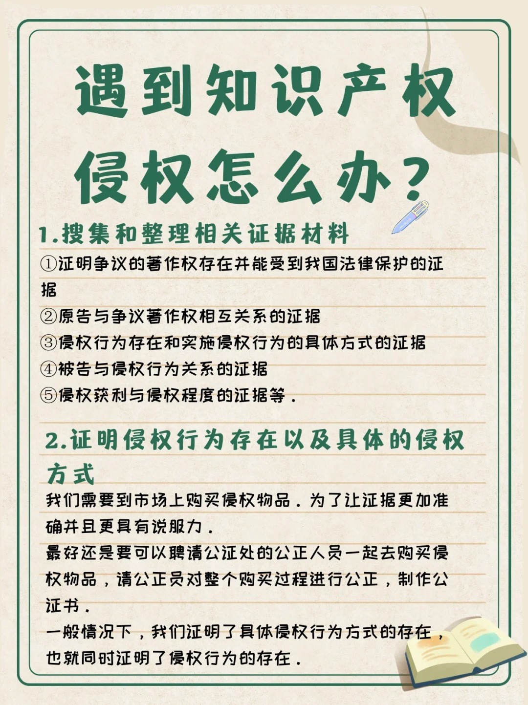 1.搜集和整理相關證據(jù)材料 ①證明爭議的著作權存在并能受到我國法律保護的證據(jù) ②原告與爭議著作權相互關系的證據(jù) ③侵權行為存在和實施侵權行為的具體方式的證據(jù)④被告與侵權行為關系的證據(jù)⑤侵權獲利與侵權程度的證據(jù)等。 2.證明侵權行為存在以及具體的侵權方式 我們需要到市場上購買侵權物品。為了讓證據(jù)更加準確并且更具有說服力。 最好還是要可以聘請公證處的公正人員一起去購買侵權物品,請公正員對整個購買過程進行公正,制作公證書。 一般情況下,我們證明了具體侵權行為方式的存在,也就同時證明了侵權行為的存在。 3.選擇管轄法院 選擇法院的基本原則是:方便原告原則、原理被告原則、選擇較大城市的原則。 這樣做主要是因為不同的法院對同一案件的審判結果可能會存在差異,甚至是比較大的差異。 4.起訴前的措施 我們需要考慮申請訴前禁令、證據(jù)保全、財產(chǎn)保全等。 這樣做主要是為了防止被告繼續(xù)實施侵權行為,將一些重要的證據(jù)固定下來,為勝訴后能夠獲得實際的經(jīng)濟賠償做保障等。 5.立案、準備開庭 如果覺得請律師成本太高,那就仔細聽接下來的方案: 1. 首先就要確定是否構成侵權,在確定侵權的情況下才有可能涉及賠償。 2. 在確定侵權的前提下,查看對方證據(jù)里有沒有專利評價報告,可以尋求現(xiàn)有設計抗辯。 3. 如果你是從其他渠道進貨的,能證明合法來源,且不知道侵犯別人專利權(善意),可以進行合法來源抗辯。(合法來源抗辯一直是知識產(chǎn)權抗辯的一個策略,但是法律實踐中合法來源抗辯成立的情況極少) 4. 專利案件中,具體賠償金額的多少,不單單只看銷售額,也許你覺得只賣了百來塊錢,讓賠幾萬不合理,但是賠償不僅要看侵權人獲利,還要看原告的損失(后面有解釋)。 5. 仔細查看傳票上的開庭時間,如果銷量不高,就在開庭前及時尋求和解。 如果你最近遇到相關的法律難題,需要找律師處理的話,歡迎隨時聯(lián)系我們。