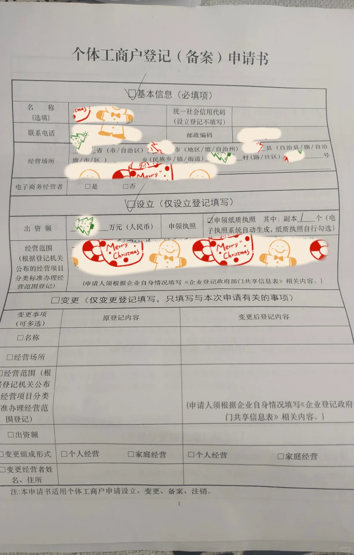 創(chuàng)業(yè)第一步,營(yíng)業(yè)執(zhí)照先走起。(雖然擺攤還沒有申請(qǐng)上,但是為了未來的攤位費(fèi),搞起來。) 雖然全程真的快速且方便,但是我辦理有點(diǎn)一波三折 結(jié)束逼逼叨,正文開始 ①第一步,在邑空間小程序申請(qǐng)擺攤 (不管有沒有申請(qǐng)成功都沒有關(guān)系,申請(qǐng)了就可以拿去給工作人員看,他們就會(huì)在電腦看到你的申請(qǐng)信息,特意因?yàn)槿绾紊暾?qǐng)跑了一趟陶溪川,回家等12月開始申請(qǐng)馬不停蹄趕緊申請(qǐng)。) ②第二步,去陶溪川邑空間三樓(從大劇院這邊的門進(jìn),離辦公室最近),跟工作人員說要辦理個(gè)人營(yíng)業(yè)執(zhí)照,工作人員會(huì)查詢你的申請(qǐng)攤位信息,然后給一張營(yíng)業(yè)執(zhí)照的復(fù)印件樣表和入駐申請(qǐng)書,填好信息后,工作人員蓋章,帶走就可以下一步了。 (小桂花貼紙的地方是攤位編號(hào),一定一定一定要檢查有沒有填,沒有填不給辦理,第二次去的是飯點(diǎn),工作人員蓋好章可能忘記填了。所以至此陶溪川跑了三趟,但是工作人員態(tài)度很好,每一次都很耐心回答我的問題。所以不要擔(dān)心。) ③第三步,帶著身份證,去珠山區(qū)行政服務(wù)中心(帶身份證就夠其他都不需要,地址po出來了,第一次去找錯(cuò)了,找到廣場(chǎng)北路那邊去了,結(jié)果后面填表時(shí)間就不夠,今天又跑了一趟)。找到門口穿小紅背心的小姐姐,告訴她要辦理個(gè)人營(yíng)業(yè)執(zhí)照,小姐姐會(huì)給兩張表,小姐姐會(huì)把要填的地方打上勾,旁邊填表的桌上有樣本,我打了彩色馬賽克的地方是必填(經(jīng)營(yíng)范圍可以找搜下百度,一般經(jīng)營(yíng)范圍大全,自行選擇合適的。)填好表,打印身份證復(fù)印件正反面,需要兩份。陶溪川領(lǐng)的表也需要復(fù)印件。(行政中心有復(fù)印機(jī),膠水,但是沒有剪刀,如果嫌麻煩,可以自己復(fù)印好兩張,裁剪好帶去。要黏的地方我都標(biāo)注出來了。) 一切都準(zhǔn)備好以后,再去找紅背心小姐姐,取號(hào),就可以去柜臺(tái)辦理。辦理結(jié)束當(dāng)下就可以拿到,很快,而且柜臺(tái)小哥哥很好,經(jīng)營(yíng)范圍還幫我們補(bǔ)充了一些。全程下來遇見的工作人員都特別好。 期間趣事,旺財(cái)與來福的名字,普通,喜慶,寓意好,特別,柜臺(tái)小哥看見都樂呵呵,而且取的人還不少,證明我很有眼光,但是重名不能用,就只能取過,換了好幾個(gè),最終縮寫旺來可以用,是不是也有望向未來的意思,哈哈哈。 最后總結(jié)一下 陶溪川邑空間→先申請(qǐng)?jiān)偬畋? 珠山區(qū)行政服務(wù)中心→ 身份證,身份證正反面復(fù)印件兩份(剪好),入駐申請(qǐng)表復(fù)印件,營(yíng)業(yè)執(zhí)照復(fù)印件樣本原件 溫馨提示:所有的辦理資料我都打上了馬賽克,為了少些不閉要的麻煩,請(qǐng)?bào)w諒。