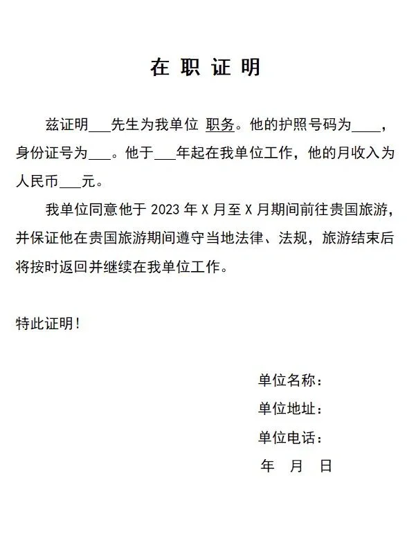 辦理簽證的在職證明其實(shí)很簡(jiǎn)單,申請(qǐng) 美國~加拿大~澳洲~新西蘭等國家時(shí)都可以通用,在職人員申請(qǐng)時(shí)需提供在職證明作為一項(xiàng)輔助資料[清單R 在職證明主要是體現(xiàn)這幾個(gè)東西: 1.證明你確實(shí)有在這個(gè)公司工作,然后要體現(xiàn)具體的工作年限,職位,還有你的薪水; 2.證明你在這個(gè)公司沒有債務(wù)或者其他不良記錄; 3.證明你這次出行公司是有批準(zhǔn)你假期的,并且保留你的職位到你回來; 4.說明你這次出行的是出于公司事務(wù)還是個(gè)人原因,以及是公司負(fù)擔(dān)費(fèi)用還是個(gè)人負(fù)擔(dān)費(fèi)用; 5.部分在職證明,有可能公司愿意給你做個(gè)擔(dān)保,就是加一句保證你會(huì)按時(shí)回國,之類的,這一條不一定會(huì)所有都有; 日韓新加坡等亞洲國家中文版就可以,澳大利亞、新西蘭、美國、加拿大、申根、英國國家最好提供英文版或者翻譯件哦