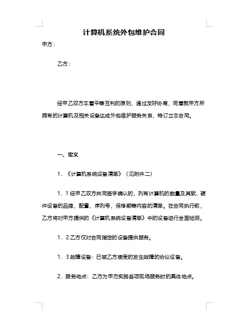 律師起草審核計算機系統(tǒng)維護協(xié)議合同模板