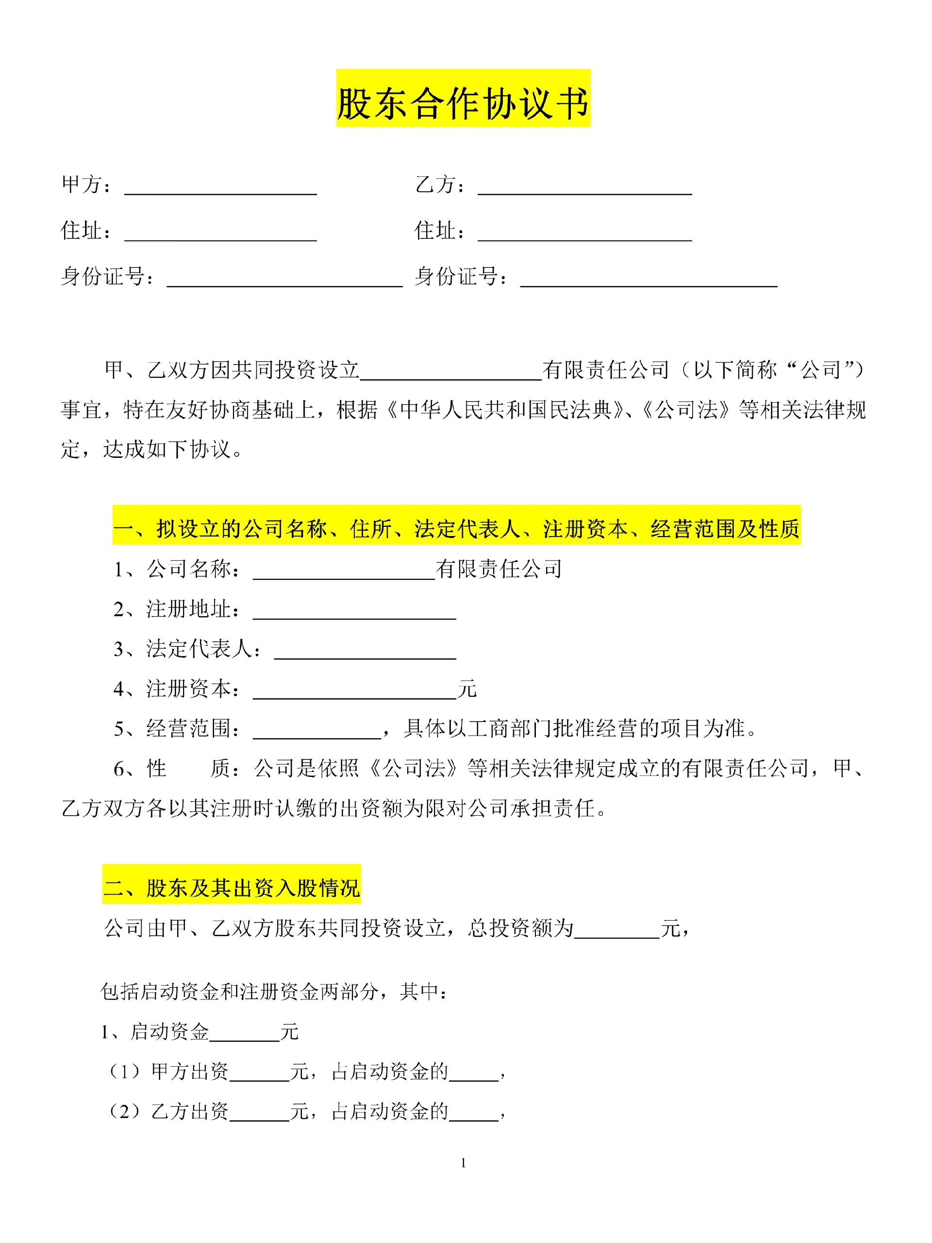 股東合伙協(xié)議模板的電子版:如何為兩人合伙公司分配股份和支付工資。合作伙伴協(xié)議合同模板。 條款明確,內(nèi)容嚴(yán)謹(jǐn)規(guī)范,主要內(nèi)容包括:出資額、持股比例、分紅比例、分工、決策機(jī)制、進(jìn)入和退出機(jī)制、競(jìng)業(yè)限制、違約責(zé)任。股東合伙協(xié)議必須包括這句話。本合伙協(xié)議的任何條款與公司章程相抵觸的,以協(xié)商一致的內(nèi)容為準(zhǔn)
