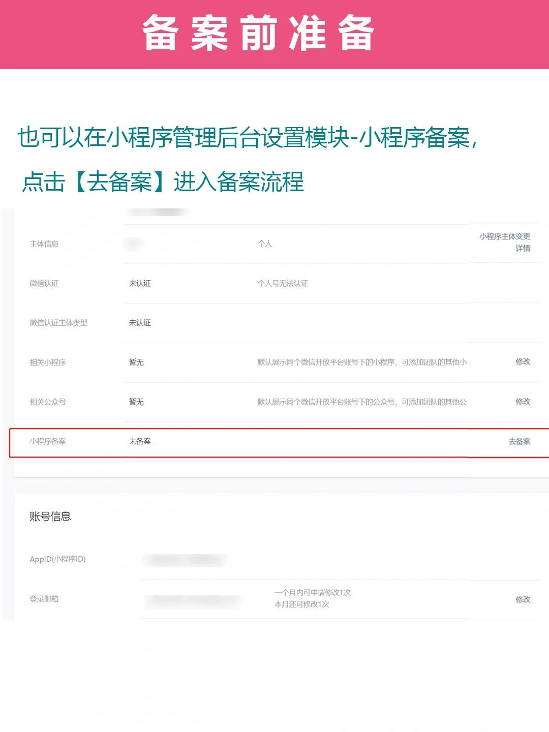 小程序已成為企業(yè)推廣和服務(wù)的重要渠道之一。隨著微型程序的使用越來越多,其管理也逐漸規(guī)范化。就像網(wǎng)站一樣,迷你程序也需要注冊。備案是指將小程序主體及其負(fù)責(zé)人的信息提交到工信部備案系統(tǒng),確保其有可追溯的記錄,能夠保證小程序的健康發(fā)展。對于小程序的用戶來說,除了額外的備案操作外,沒有任何重大影響,因此無需擔(dān)心。 根據(jù)微信官方通知,從2023年9月1日起,所有新注冊的小程序都需要注冊后才能發(fā)布上線。那些已經(jīng)發(fā)布和推出的人也必須在2024年3月31日之前注冊,否則他們將被解雇。我們整理了小程序備案所需的材料和流程,讓大家更容易理解。如果你是小程序的負(fù)責(zé)人,我相信有些人可能已經(jīng)收到了小程序需要注冊的通知。按照我們的介紹步驟,很容易上手。