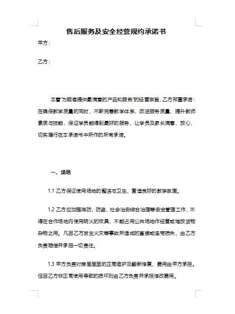 起草一份售后服務(wù)和安全運(yùn)營承諾書的秘籍 今天我要和大家分享的是起草售后服務(wù)和安全管理?xiàng)l例承諾書的要點(diǎn)!一份好的承諾書,不僅為客戶提供可靠的售后支持,也為企業(yè)的安全運(yùn)營保駕護(hù)航。來和我一起獲取這些秘密! 明確承諾的主體和對(duì)象 首先,在承諾書的開頭,有必要清楚地說明承諾的主體(即企業(yè)或個(gè)人)和對(duì)象(即客戶或關(guān)聯(lián)方)。這可以讓每個(gè)人一目了然,誰對(duì)誰做出了這一承諾。 售后服務(wù)內(nèi)容及標(biāo)準(zhǔn) 接下來,就是售后服務(wù)的亮點(diǎn)!在本節(jié)中,有必要提供企業(yè)提供的售后服務(wù)的詳細(xì)清單,如退換貨政策、維修服務(wù)、技術(shù)支持等。同時(shí),有必要明確服務(wù)標(biāo)準(zhǔn),如響應(yīng)時(shí)間、處理程序等,使客戶能夠清楚地了解他們可以享受的服務(wù)。 安全運(yùn)行承諾及措施 安全經(jīng)營是企業(yè)發(fā)展的基石,因此也應(yīng)在承諾書中得到充分體現(xiàn)。我們必須明確承諾遵守相關(guān)法律法規(guī),以確保我們的商業(yè)活動(dòng)合法性。同時(shí),要列出企業(yè)為確保安全運(yùn)營所采取的具體措施,如定期檢查、安全培訓(xùn)等,讓客戶和相關(guān)方感受到企業(yè)的責(zé)任感和專業(yè)性。 責(zé)任和義務(wù) 在承諾書中,還需要明確說明企業(yè)的責(zé)任和義務(wù)。這包括對(duì)客戶的承諾,例如確保產(chǎn)品質(zhì)量和提供高質(zhì)量的服務(wù);這也包括對(duì)社會(huì)的承諾,如遵守環(huán)境法規(guī)和保護(hù)員工權(quán)利。這可以使客戶和利益相關(guān)者更加信任公司。 違約處理和爭議解決 當(dāng)然,任何合作都必然會(huì)遇到一些意想不到的情況。因此,在承諾書中,也有必要明確違約處理方式和糾紛解決機(jī)制。例如,如果一家公司沒有履行承諾,該如何賠償客戶的損失;如果雙方之間有爭議,應(yīng)該如何協(xié)商和解決。所有這些都可以使合作更加順利。 溫馨提醒 在起草承諾書時(shí),建議企業(yè)首先進(jìn)行全面自查,確保其售后服務(wù)和安全措施符合高標(biāo)準(zhǔn)。同時(shí),還可以邀請(qǐng)客戶和相關(guān)方參與討論,聽取他們的意見和建議,使承諾書更貼近實(shí)際需求。 最后,一份好的承諾書不僅是一種保證,也是一種信任。通過認(rèn)真起草和履行承諾書,企業(yè)可以贏得客戶的信任和支持,為企業(yè)的長期發(fā)展奠定堅(jiān)實(shí)的基礎(chǔ)。 好了,以上就是起草售后服務(wù)承諾書和安全操作規(guī)程的要點(diǎn)!希望這些秘密能夠幫助到大家,讓企業(yè)在保證安全運(yùn)營的同時(shí)提供優(yōu)質(zhì)服務(wù)!