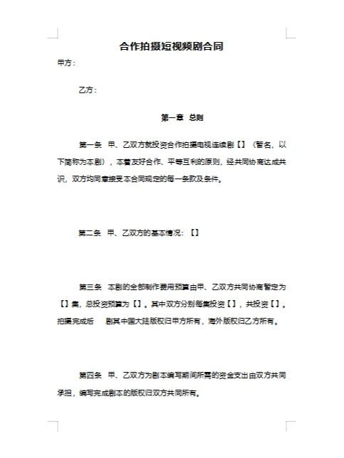 律師起草審核的拍攝短視頻劇協(xié)議合同模板