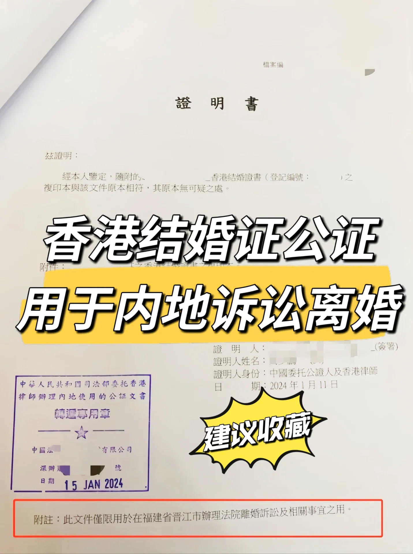 香港結(jié)婚證公證用于內(nèi)地訴訟離婚