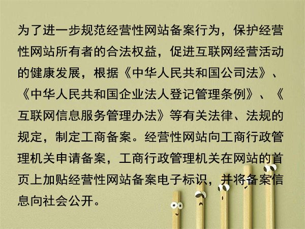 備案是指向主管機關報告事由存案以備查考。行政法角度看備案,實踐中主要是《立法法》和《法規(guī)規(guī)章備案條例》的規(guī)定。根據(jù)中華人民共和國信息產(chǎn)業(yè)部第十二次部務會議審議通過的《非經(jīng)營性互聯(lián)網(wǎng)信息服務備案管理辦法》精神,在中華人民共和國境內(nèi)提供非經(jīng)營性互聯(lián)網(wǎng)信息服務,應當辦理備案。未經(jīng)備案,不得在中華人民共和國境內(nèi)從事非經(jīng)營性互聯(lián)網(wǎng)信息服務。而對于沒有備案的網(wǎng)站將予以罰款和關閉。