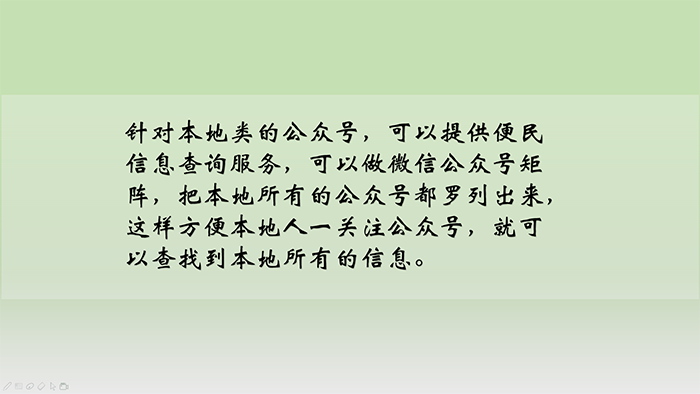 3、針對(duì)本地類的公眾號(hào),可以提供便民信息查詢服務(wù),可以做微信公眾號(hào)矩陣,把本地所有的公眾號(hào)都羅列出來(lái),這樣方便本地人一關(guān)注公眾號(hào),就可以查找到本地所有的信息。
