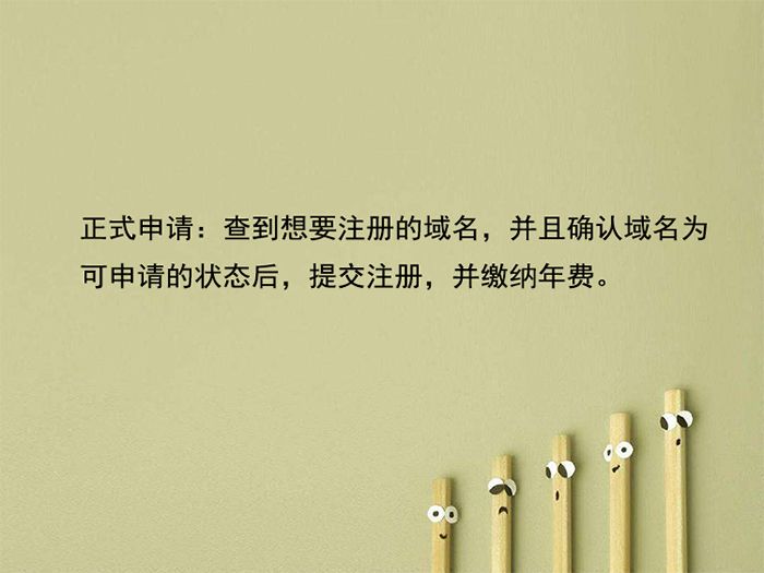 4、正式申請:查到想要注冊的域名,并且確認(rèn)域名為可申請的狀態(tài)后,提交注冊,并繳納年費。