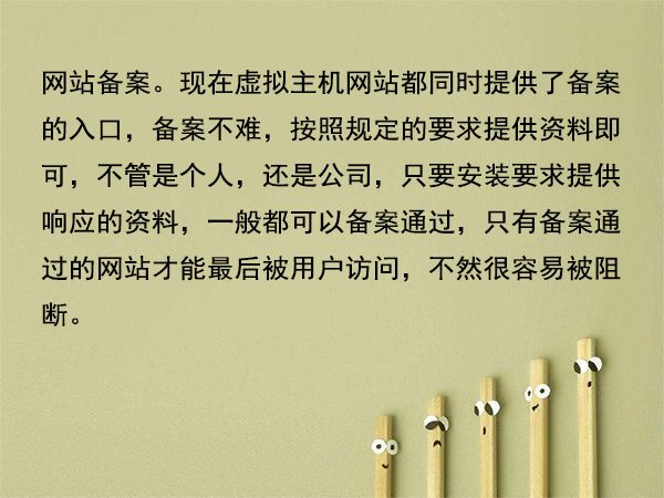 5、網(wǎng)站備案?,F(xiàn)在虛擬主機(jī)網(wǎng)站都同時(shí)提供了備案的入口,備案不難,按照規(guī)定的要求提供資料即可,不管是個(gè)人,還是公司,只要安裝要求提供響應(yīng)的資料,一般都可以備案通過(guò),只有備案通過(guò)的網(wǎng)站才能最后被用戶訪問(wèn),不然很容易被阻斷。