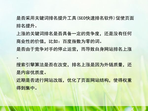 1.是否采用關(guān)鍵詞排名提升工具(SEO快速排名軟件)促使頁面排名提升。