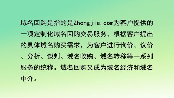 域名回購(gòu)是指的是ningtui.com為客戶(hù)提供的一項(xiàng)定制化域名回購(gòu)交易服務(wù),根據(jù)客戶(hù)提出的具體域名購(gòu)買(mǎi)需求,為客戶(hù)進(jìn)行詢(xún)價(jià)、議價(jià)、分析、談判、域名收購(gòu)、域名轉(zhuǎn)移等一系列服務(wù)的統(tǒng)稱(chēng)。域名回購(gòu)又成為域名經(jīng)濟(jì)和域名中介。