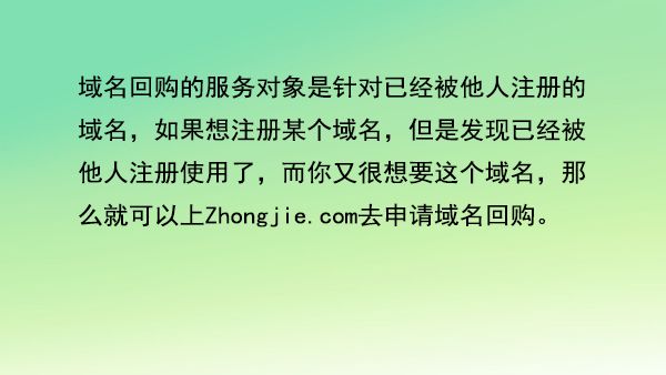 域名回購(gòu)的服務(wù)對(duì)象是針對(duì)已經(jīng)被他人注冊(cè)的域名,如果想注冊(cè)某個(gè)域名,但是發(fā)現(xiàn)已經(jīng)被他人注冊(cè)使用了,而你又很想要這個(gè)域名,那么就可以上ningtui.com去申請(qǐng)域名回購(gòu)。