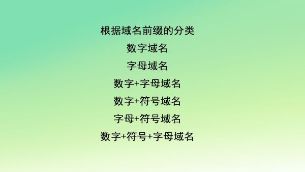 現(xiàn)在我們常見(jiàn)的就是英文域名,英文域名:English.com;中文域名:中介.com 、中介.中國(guó)、zhongjie.中國(guó);其它語(yǔ)言域名同上。