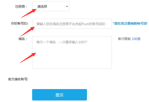 (3)前往域名注冊(cè)商平臺(tái),將待入庫(kù)的域名0元PUSH至對(duì)應(yīng)的中介網(wǎng)指定的專屬賬號(hào)下。